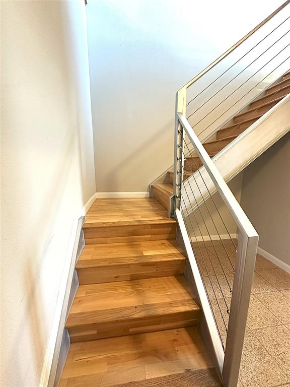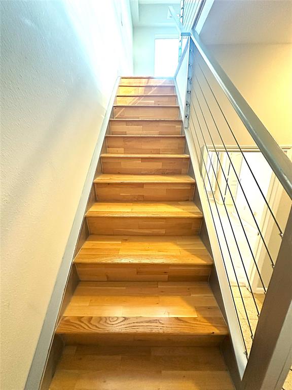 A sleek, steel cable staircase leads to the lower-level primary suite, complete with double French doors, a large bedroom, custom closet, and full bath for added privacy. Refrigerator, washer, dryer, and trash compactor are all included.