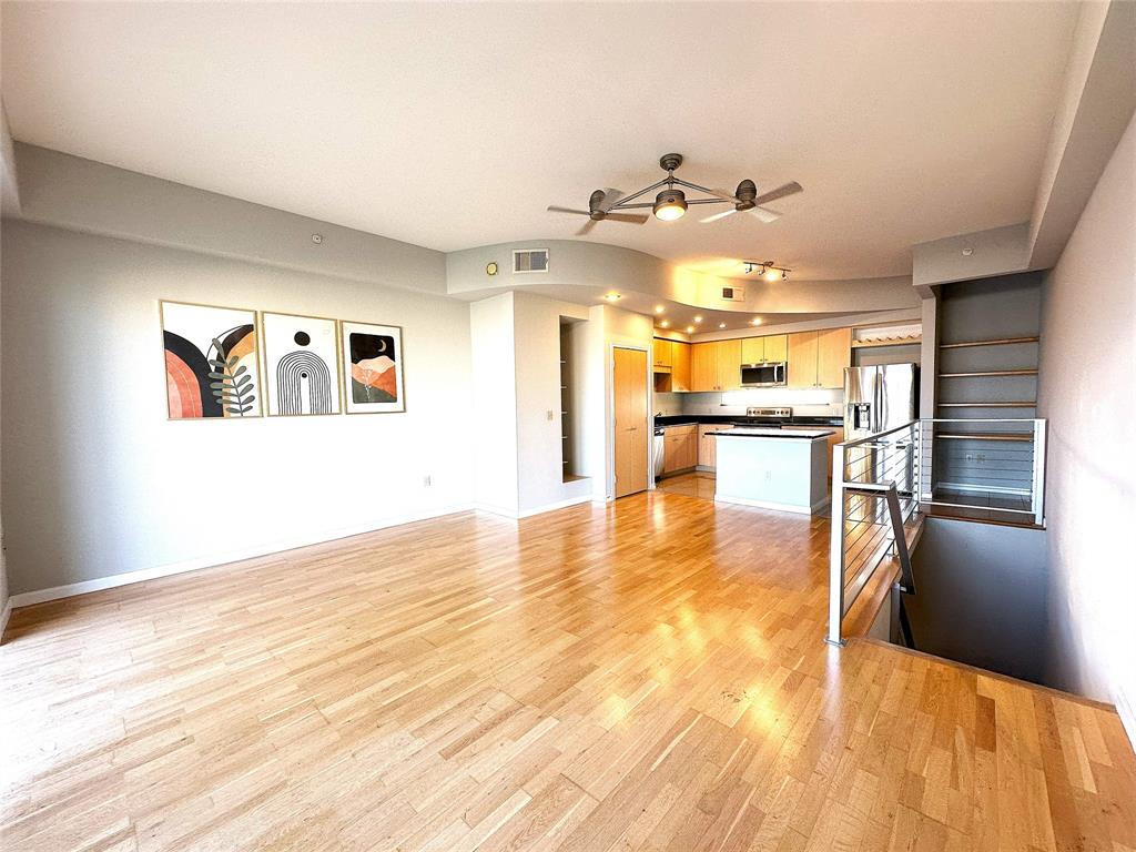Experience breathtaking views from this stunning 16th-floor, two-story penthouse at The Renaissance on Turtle Creek! This one-bedroom, one-bath condo features dramatic soaring ceilings, floor-to-ceiling windows, and warm wood flooring throughout. The open-concept upstairs living space includes a spacious living and dining area, modern kitchen with open shelving (perfect for a work-from-home setup), and a private balcony with panoramic views of Downtown Dallas and Turtle Creek.