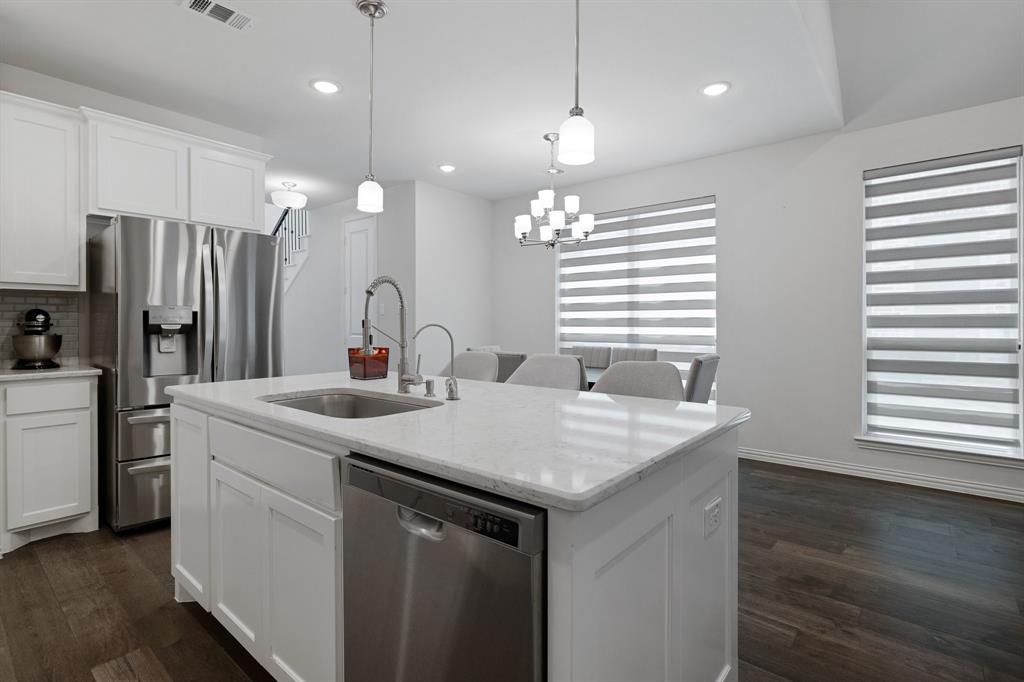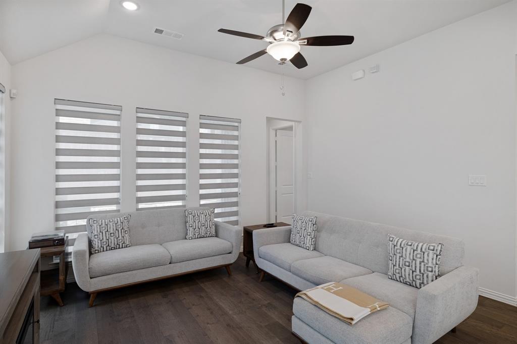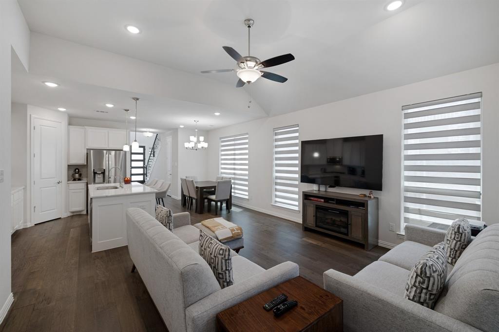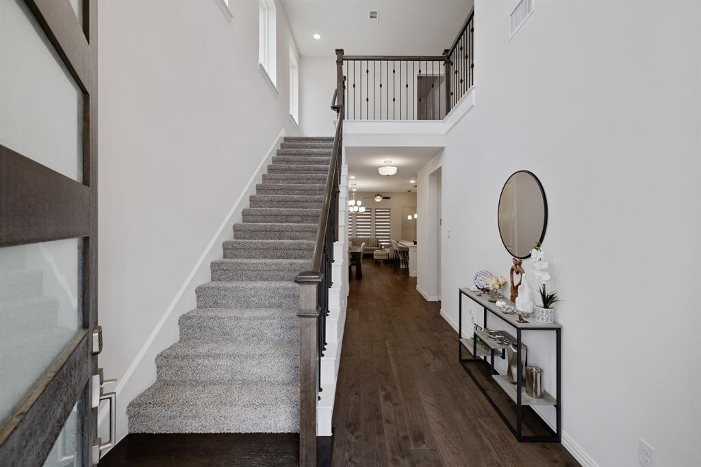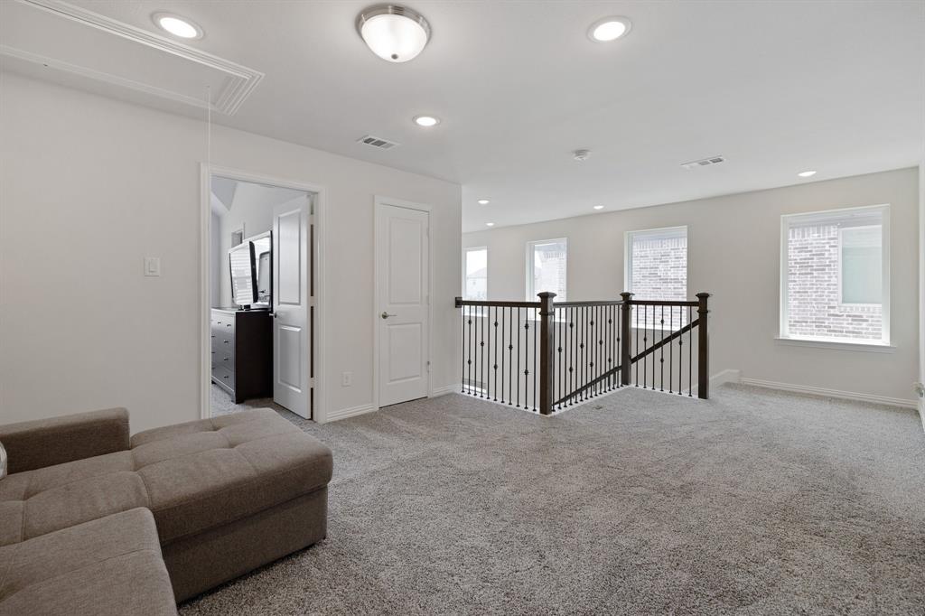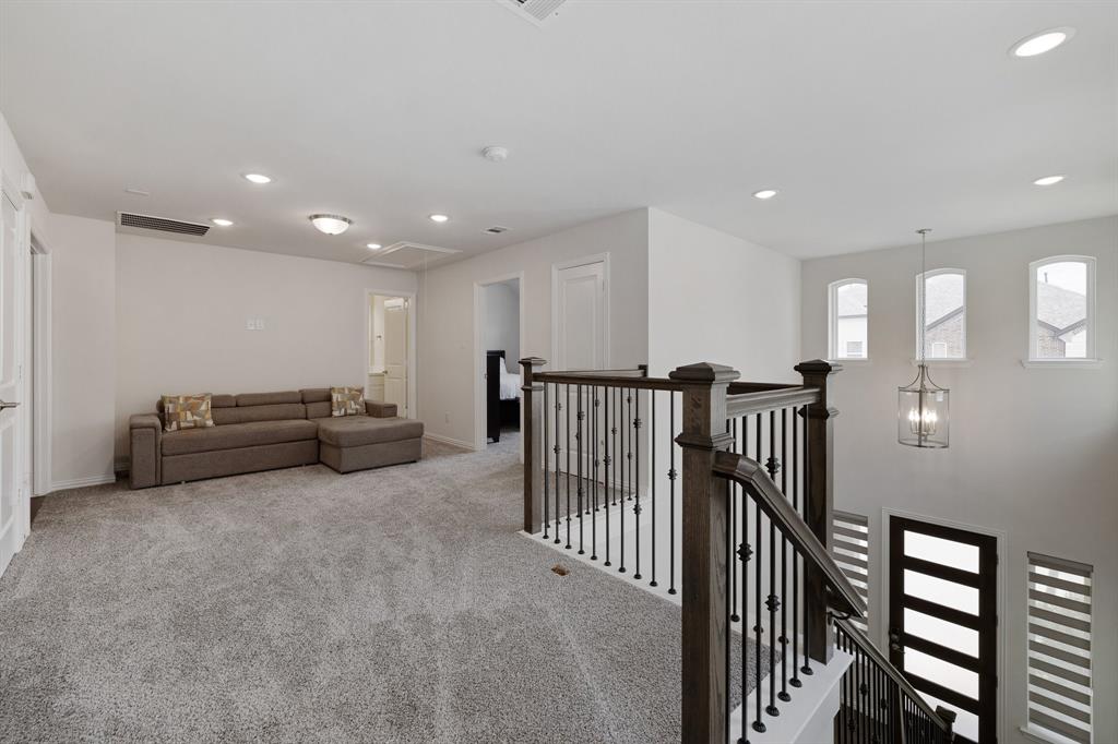 Step into style with this beautifully crafted 3-bedroom, 2.5-bathroom townhome, nestled in the highly sought-after Castle Hills North Point community. From the moment you enter, you’re welcomed by soaring ceilings and abundant natural light that accentuate the sleek, modern finishes throughout. Enjoy the convenience of a spacious first-floor primary suite, offering privacy and ease of living. Upstairs, you'll find two additional bedrooms, a cozy fully equipped media room, and a bright, open loft—perfect for a home office, playroom, or reading nook. Step outside to your own private outdoor retreat featuring a low-maintenance yard, ideal for morning coffee or peaceful evenings. Surrounded by tall privacy fencing, it offers a tranquil escape with minimal upkeep. This home has been lovingly maintained, showcasing gleaming floors and thoughtfully designed living spaces that are truly move-in ready. Located just minutes from major highways, shopping, and entertainment, you'll enjoy quick access to Grandscape, Legacy West, and The Star—three of DFW’s premier mixed-use destinations. As a Castle Hills resident, you'll enjoy exclusive access to five private workout facilities, multiple community parks ideal for families, and all Castle Hills pools with a resident pool pass—offering a true resort-style lifestyle every day.