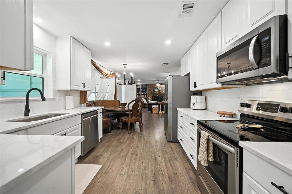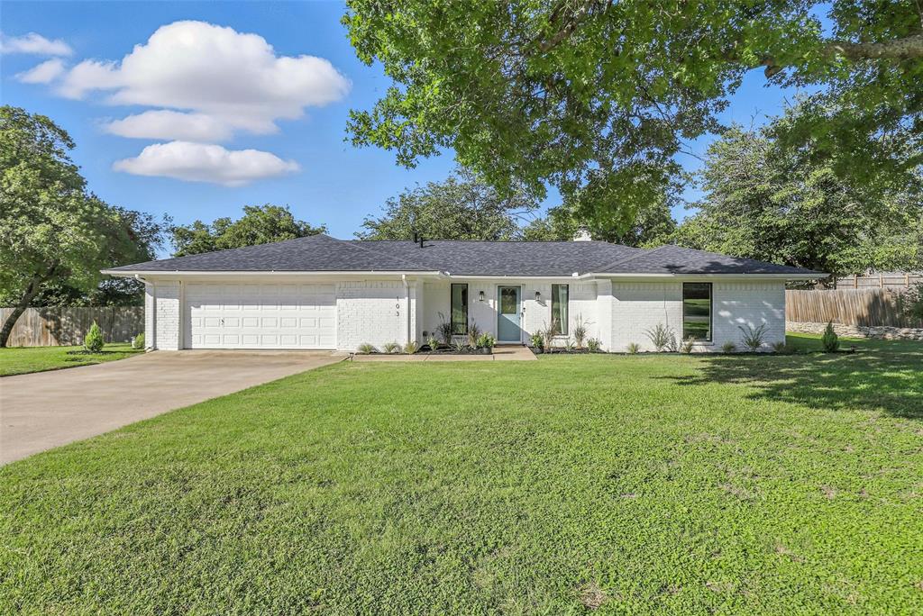 ***SELLER OFFERING UP TO $10,000 IN SELLER CONCESSIONS FOR PRIMARY SUITE UPGRADES*** Welcome to 103 Mockingbird Lane—a sophisticated, remodeled 3-bedroom, 2-bath ranch-style home with an oversized garage, nestled on a beautifully maintained, oak-shaded half-acre lot. Located in a quiet neighborhood right in the city limits of Weatherford and just 3 minutes from I-20, this home offers a convenient commute into Fort Worth. LOCATION. LOCATION. LOCATION!!! Positioned right off South Main, you're within 5 minutes of the Weatherford Square, Target, Walgreens, Walmart, HomeGoods, Lowe’s, Home Depot, and a wide variety of restaurants. The beloved Weatherford Farmers Market is also nearby, offering fresh local produce and seasonal favorites. Schools are all within 1 MILE! Inside, the home offers a thoughtful blend of updated finishes and timeless charm. The open-concept layout flows easily, making everyday living and gathering with family or friends feel simple and comfortable. A beautiful full brick fireplace, recessed lighting, and dark natural flooring set a warm tone throughout the main living spaces. Every bedroom includes remote-controlled ceiling fans, and the fully remodeled kitchen offers spacious granite countertops, new appliances, beautiful chandelier & excellent storage. The sunroom is a standout, featuring light gray epoxy floors, two French doors, and commercial-grade triple-pane windows—ideal for an additional dining area, living space, or home office. The home includes a brand-new architectural shingle roof (2024), and the oversized garage offers room for storage, tools, projects, or large vehicles. The spacious backyard is a blank canvas, ready to be shaped into whatever suits your lifestyle—pool, garden, play area, or patio. A detached shed that offers 2 LARGE separate enclosed sections - one being a workshop with built-in shelving, counter, & new roof.