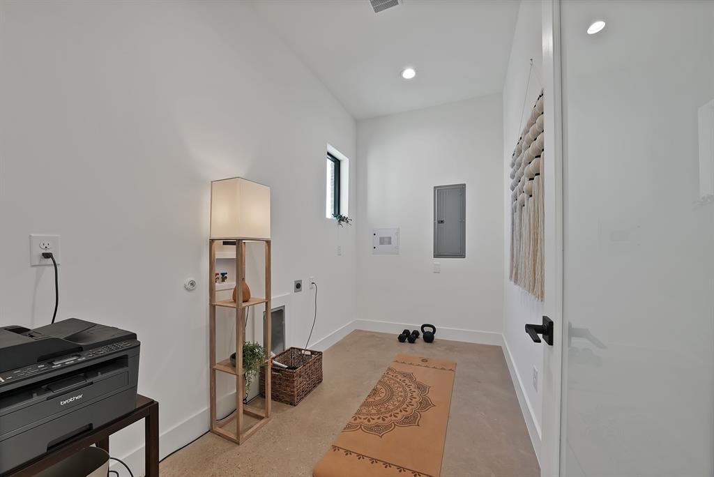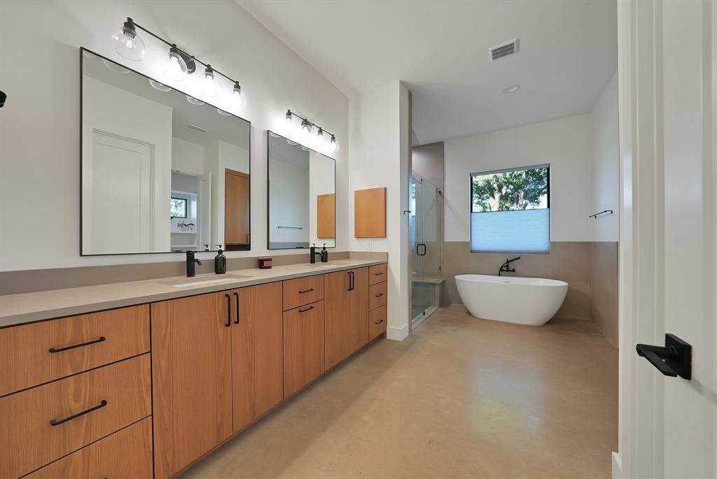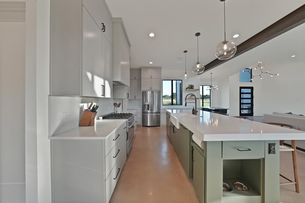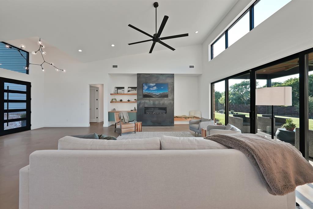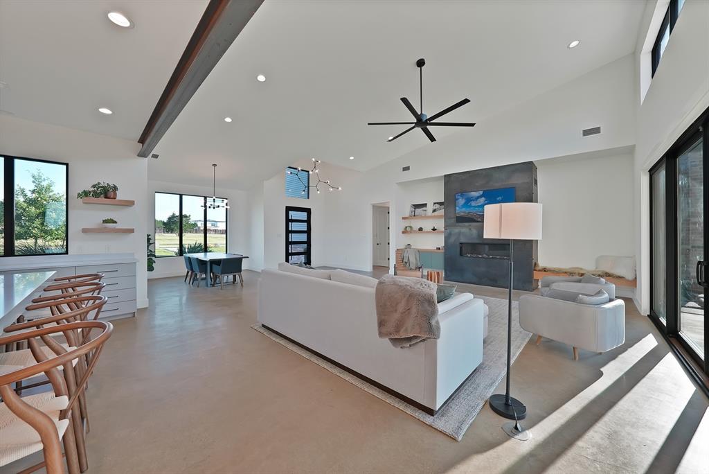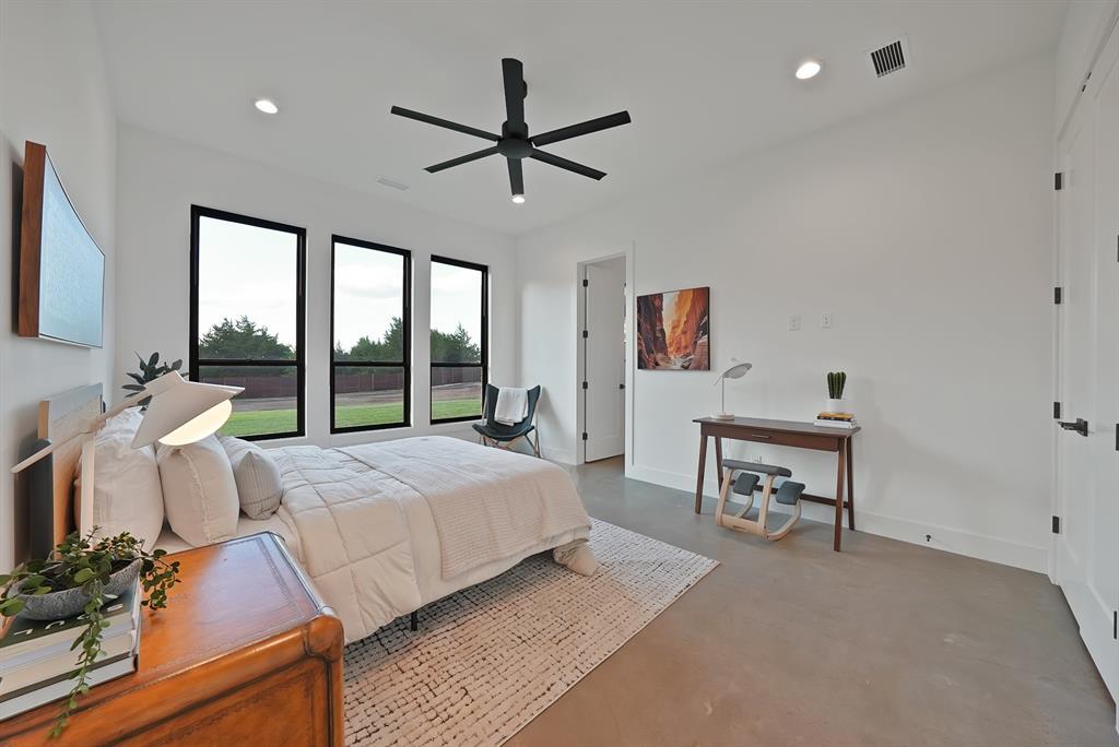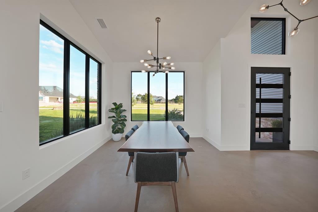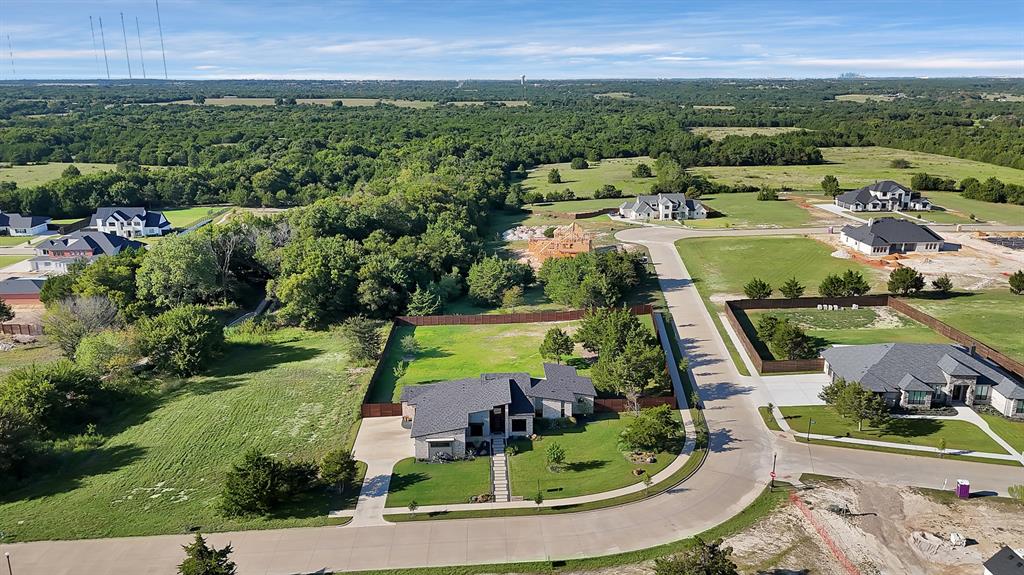 Modern Luxury Meets Organic Charm in This Thoughtfully Designed Single-Story Home in Azalea Hollow. This Gated Community is Situated in Midlothian—centrally located between Dallas and Fort Worth. The custom-built, 3,280 SF single-story home sits on a beautifully treed and landscaped 1.09-acre corner lot overlooking a serene HOA greenbelt. Blending refined comfort with striking modern design, this home features 4 bedrooms, 3 baths, a flex room, and sloped ceilings in the great room, anchored by a Valor L2 fireplace and a bold 10-inch I-beam tying into sleek industrial accents. The gourmet kitchen impresses with Calacatta quartz, Verona range, GE & Invisicook appliances, and upgraded cabinetry including hidden silverware drawers and built-in pantry storage. Retreat to the luxurious primary suite with a freestanding tub, dual vanities, and custom His & Hers built-ins. Matte black fixtures, polished concrete flooring, USB and dimmer switches, and full smart home wiring elevate daily living. Outside, enjoy an oversized covered porch, Cumaru wood accents, and a shaded brick patio nestled beneath mature trees, a full irrigation system, native landscaping, and a sprawling 3-car insulated garage with built-in workbench. Escape into a life of tranquility and convenience - welcome home!