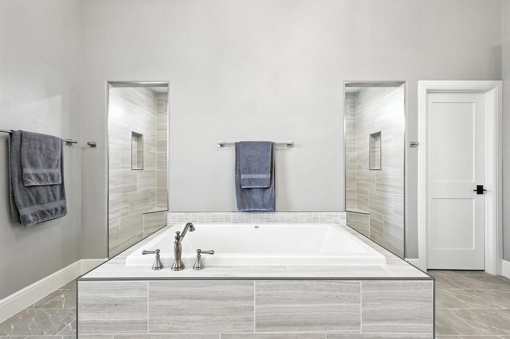 Inside, you’ll find hand-scraped hardwoods throughout the main living spaces and a spacious master suite with private patio and hot tub access. The spa-like bath offers a soaking tub, dual-entry walk-in shower with multiple shower heads, separate vanities, and a walk-in closet with built-ins and a winter rack.