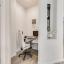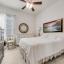 The primary suite is privately tucked away, featuring a walk-in closet equipped with added top rods and custom shelving for optimized storage. The kitchen is a showstopper, boasting sleek quartz countertops, upgraded appliances—including the refrigerator—and a reverse osmosis water purification system at the sink. A gas line has also been installed behind the stove for flexibility.