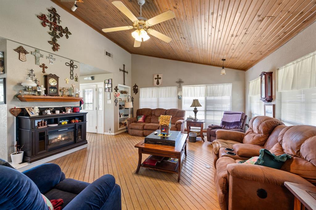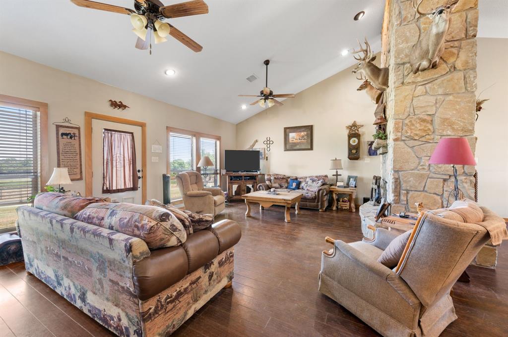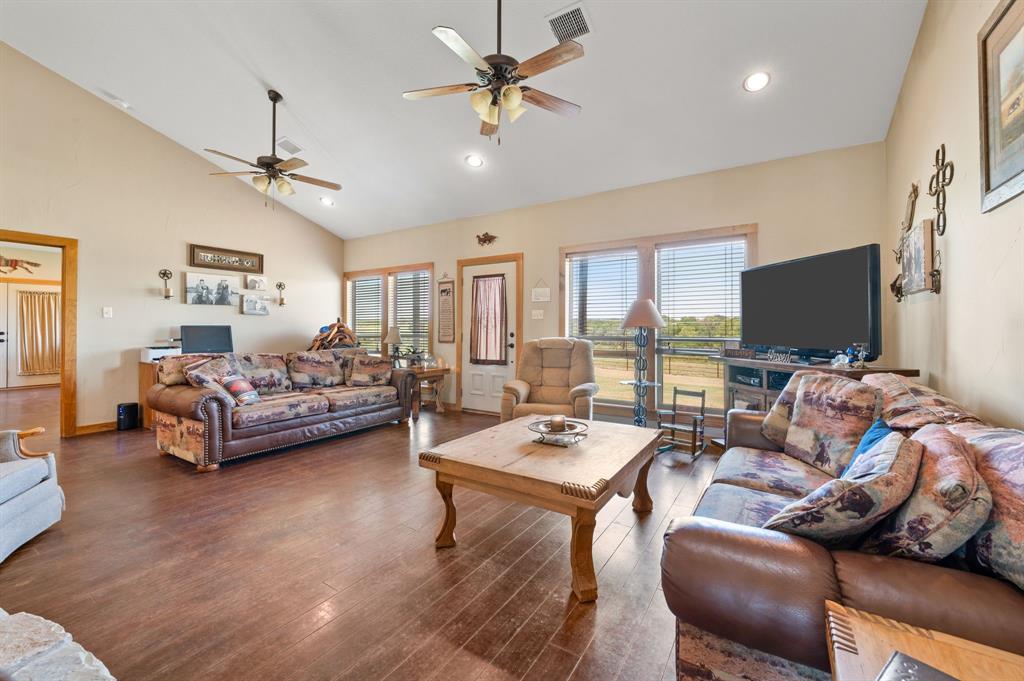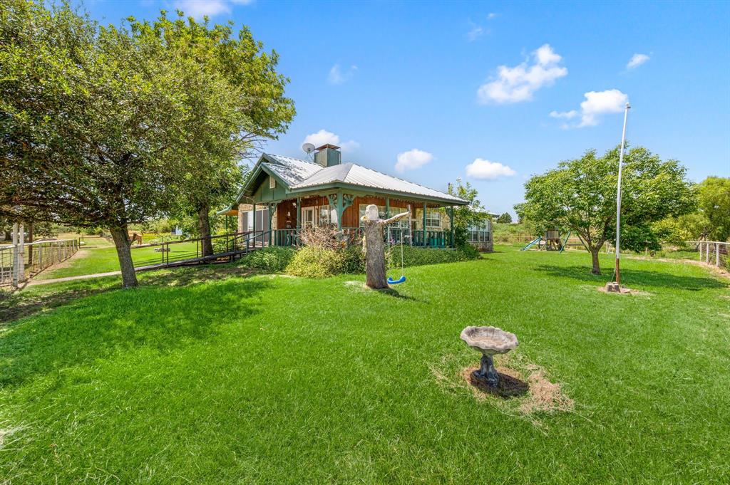 The main home offers 2,644 sq. ft. of air-conditioned living space, including 3 bedrooms and 2 bathrooms. Additionally, a fourth bedroom, ideal for mother-in-law quarters, is located across a breezeway for added privacy. The kitchen is equipped with an abundance of cabinets, stainless steel appliances, breakfast bar and granite countertops. The spacious living area, open to the kitchen, boasts a floor-to-ceiling stone fireplace, perfect for cold winter evenings and don’t forget about the long covered patio that provides a relaxing spot for morning coffee before tending to livestock. The guest house, is a charming farmhouse situated towards the front of the property. It includes 2 bedrooms, 2 bathrooms, office, wood floors, a metal roof and a fenced yard. The third residence is a well-maintained 3-bedroom, 2-bathroom mobile home, suitable for guests, ranch help, or as a rental income opportunity. Country living with city conveniences nearby. Welcome home to your family compound and country estate. Call for a private tour today!