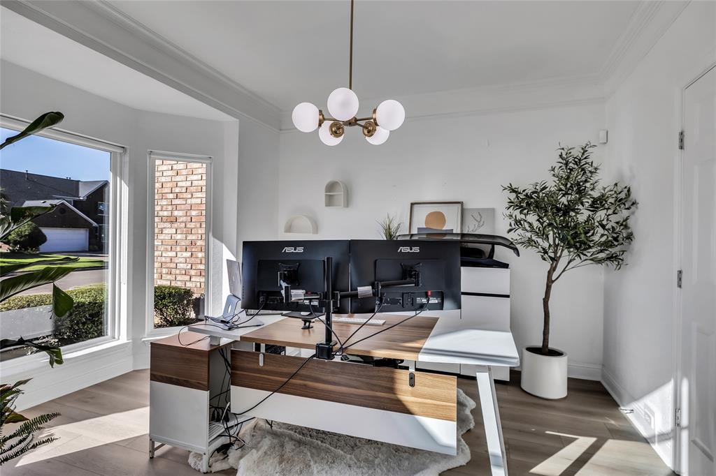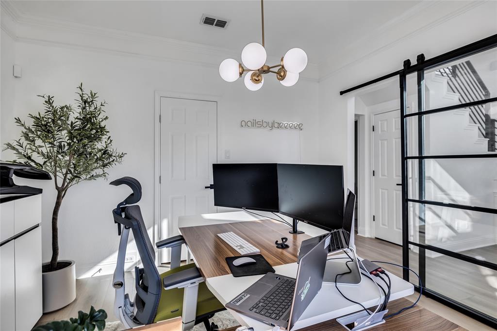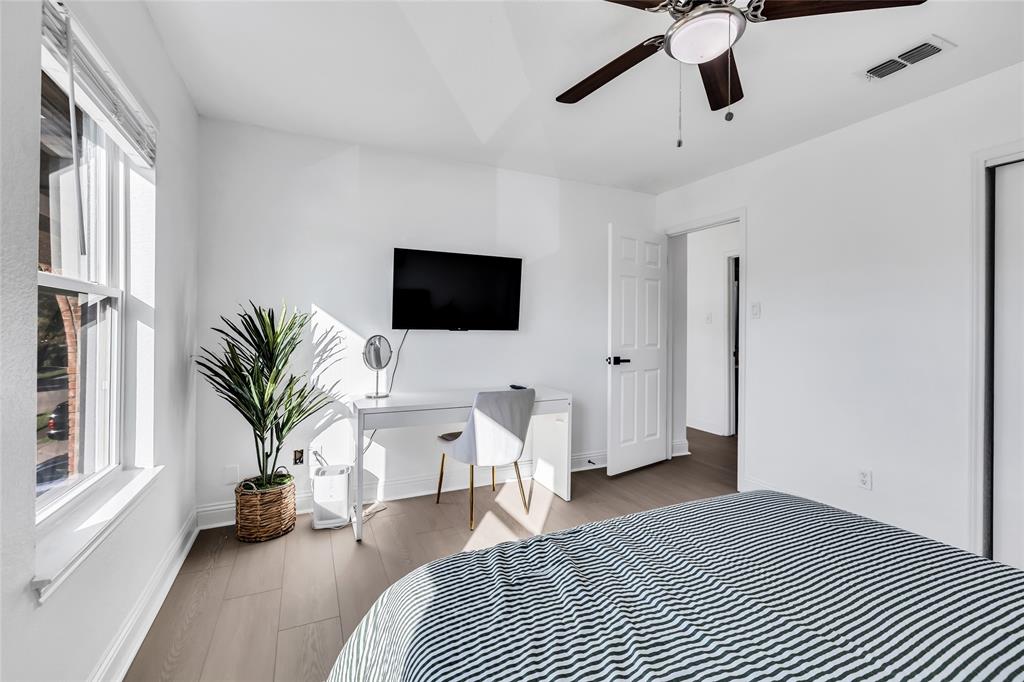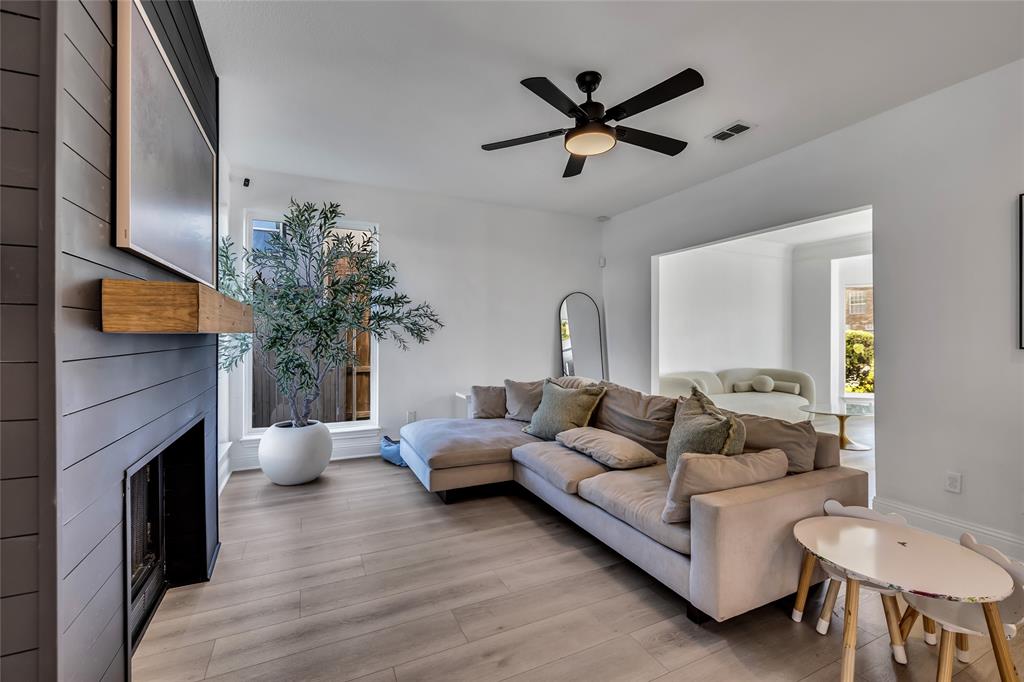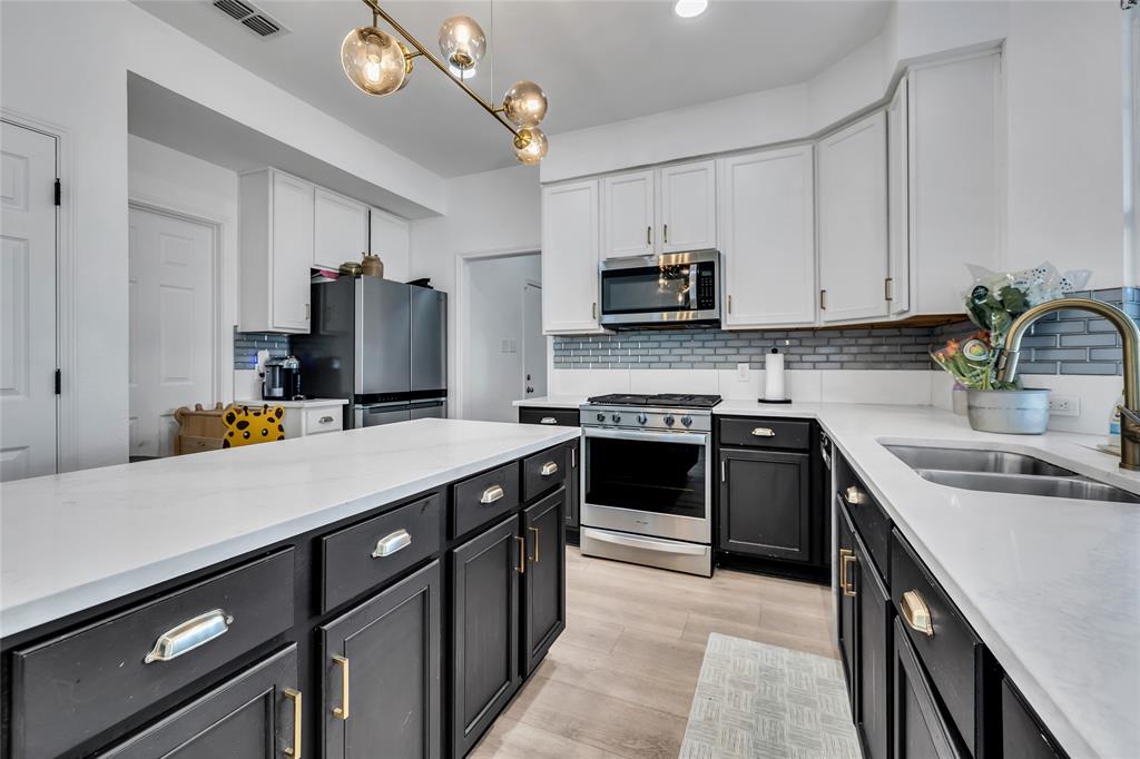 As you step in to the front door, you are greeted with a new custom-designed metal railing with the main floor having open-kitchen concept layout with new SPC flooring on both the first and second floor, large windows, and abundant natural light. In the living room, there is a custom fireplace with modern aesthetics. The fully remodeled kitchen is a chef’s dream with quartz countertops, sleek cabinetry, and modern black finishes. A spacious living area flows seamlessly into the dining space, ideal for entertaining. There is also a new glass sliding door for the office.