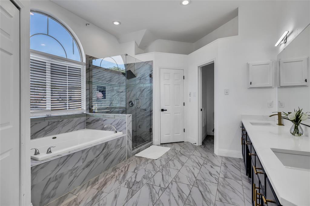 Retreat to the expansive primary suite with vaulted ceilings, a spa-inspired ensuite, dual vanities, a soaking tub, and a frameless glass shower. Upstairs offers generously sized bedrooms, a flexible loft, and updated bathrooms with contemporary tile and fixtures.