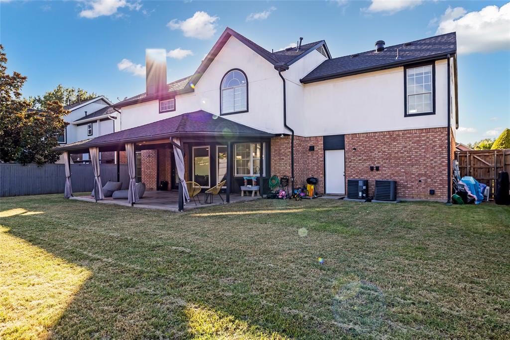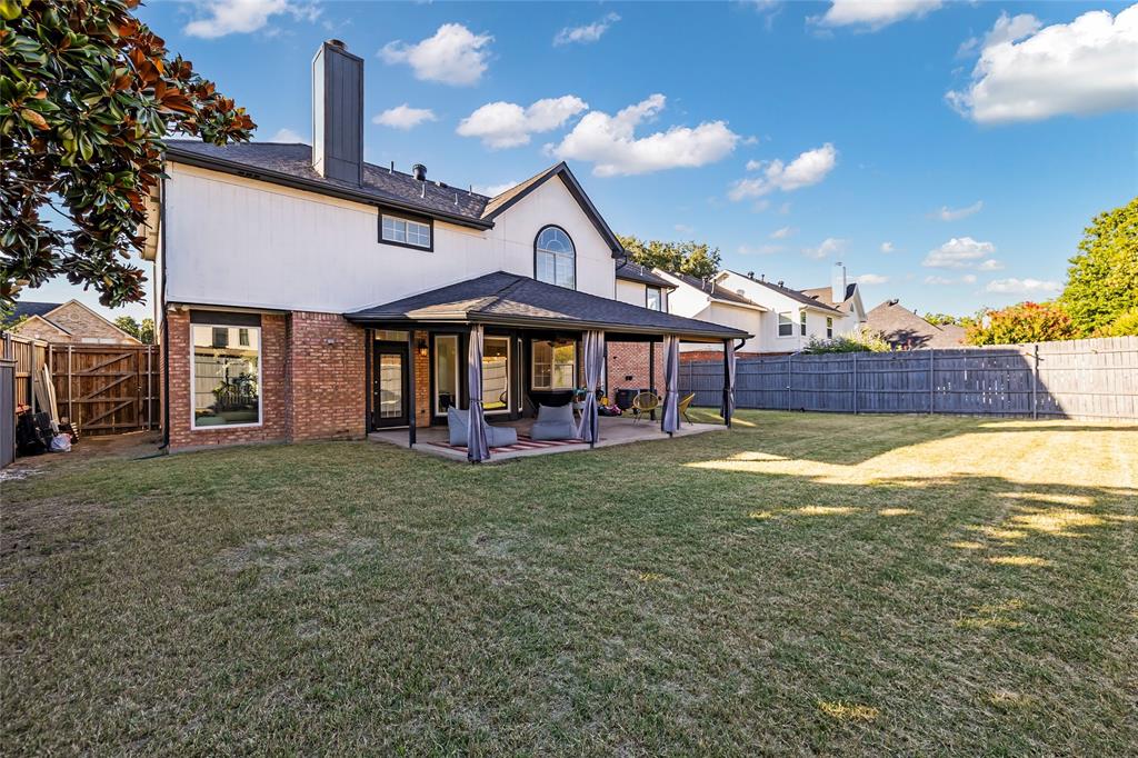 Enjoy outdoor living with a covered patio, fenced backyard, and manicured lawn—perfect for family gatherings. Curb appeal is enhanced by fresh exterior paint, an arched entryway, and a two-car garage.