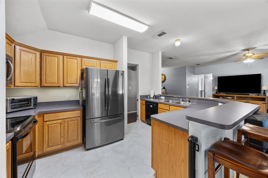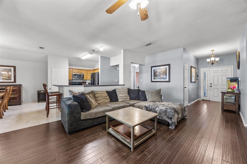 You’ll find a light-filled, open-concept design made for both gathering and unwinding where bamboo flooring flows seamlessly through the entry, living room, and primary suite. The kitchen and dining area shine with NEW TILE. The secondary bedrooms feature FRESH CARPET for added comfort. Step outside with ease to enjoy the shaded backyard oasis, where mature trees create a private and tranquil backdrop.