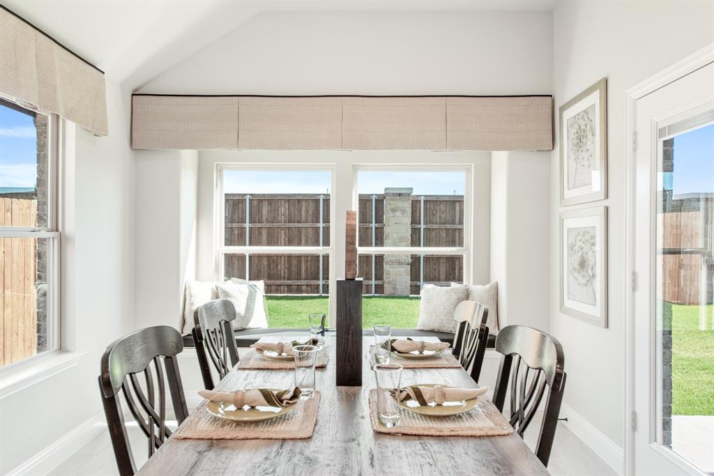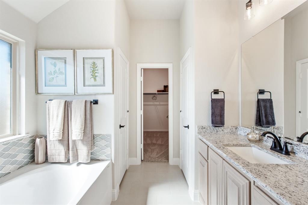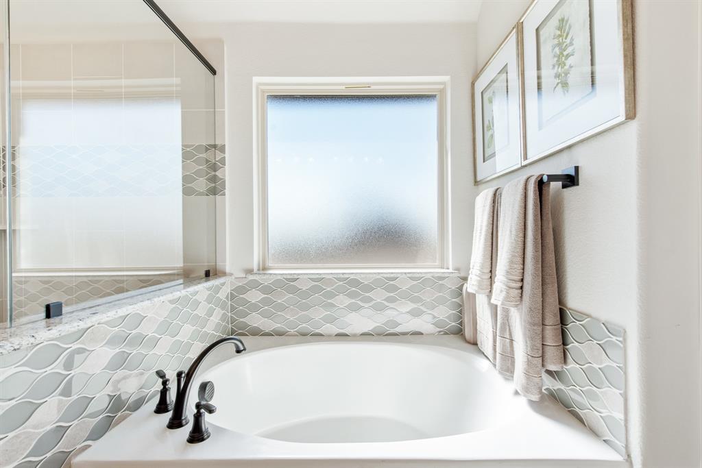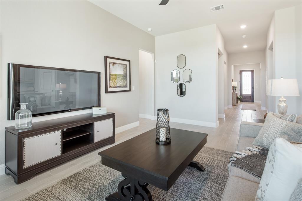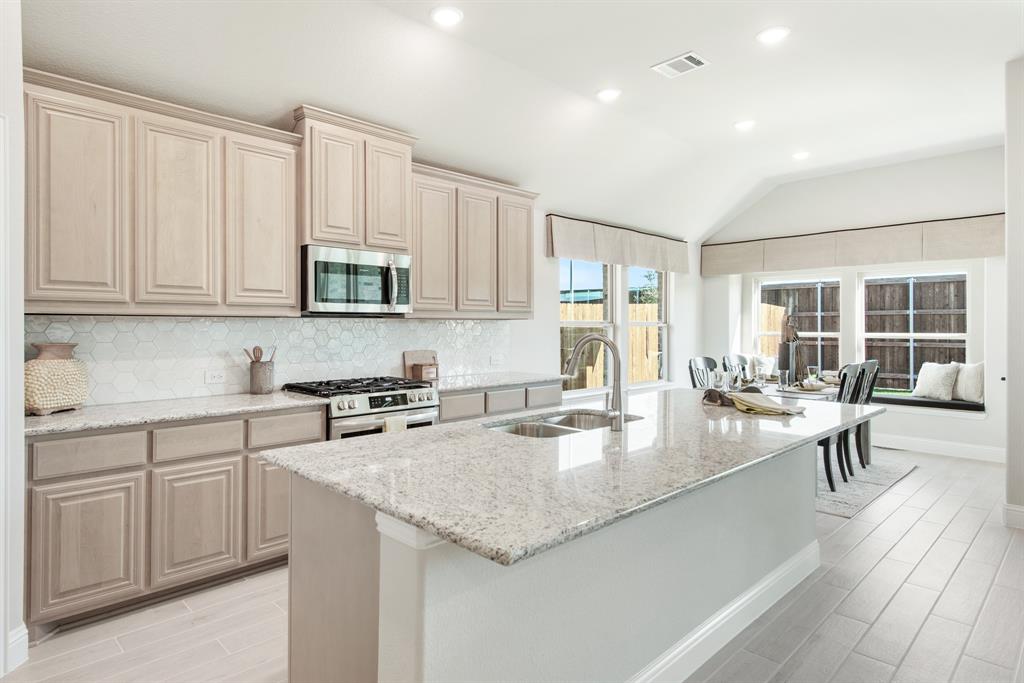 SINGLE-STORY MODEL HOME FOR SALE! Bloomfield's Jasmine model is ready to hit the market! Prime location near the entrance of Legacy Ranch and only a few streets away from the community amenities - look out splash pad, playground and trails! The Jasmine plan features an open-concept layout with 4 bedrooms and 3 full baths, with the custom front door opening into 10-foot ceilings and a long, elegant entry lined in bleached beechwood-tone wood tile floors that stretch into other common areas. Natural light pours in through oversized windows, providing an unobstructed view of the backyard and covered patio. Anchored by sand-washed cabinetry, granite countertops, and a hexagon tile backsplash, the kitchen doesn’t just serve—it captivates, becoming a centerpiece that elevates the entire home. Unique to this home and included in the sale: custom drapes and window seat cushions that were professionally selected to match the model home's signature accent walls—a cohesive, designer look you won’t find in resale homes. 2 secondary bedrooms sit at the front of the home with a shared hall bath between them, while a 3rd is tucked off the main hallway with a full bath just across the way; the primary suite enjoys its own private 'wing'. Framed by tall windows and a cozy window seat, the primary feels like a quiet escape, leading to a serene bathroom with sculpted tile, a soaking tub, glass-enclosed shower with a bench seat, and a spacious walk-in closet. More perks to be discovered - gutters, uplighting, premium landscaping, security system - just visit or call Bloomfield at Legacy Ranch before it's too late!