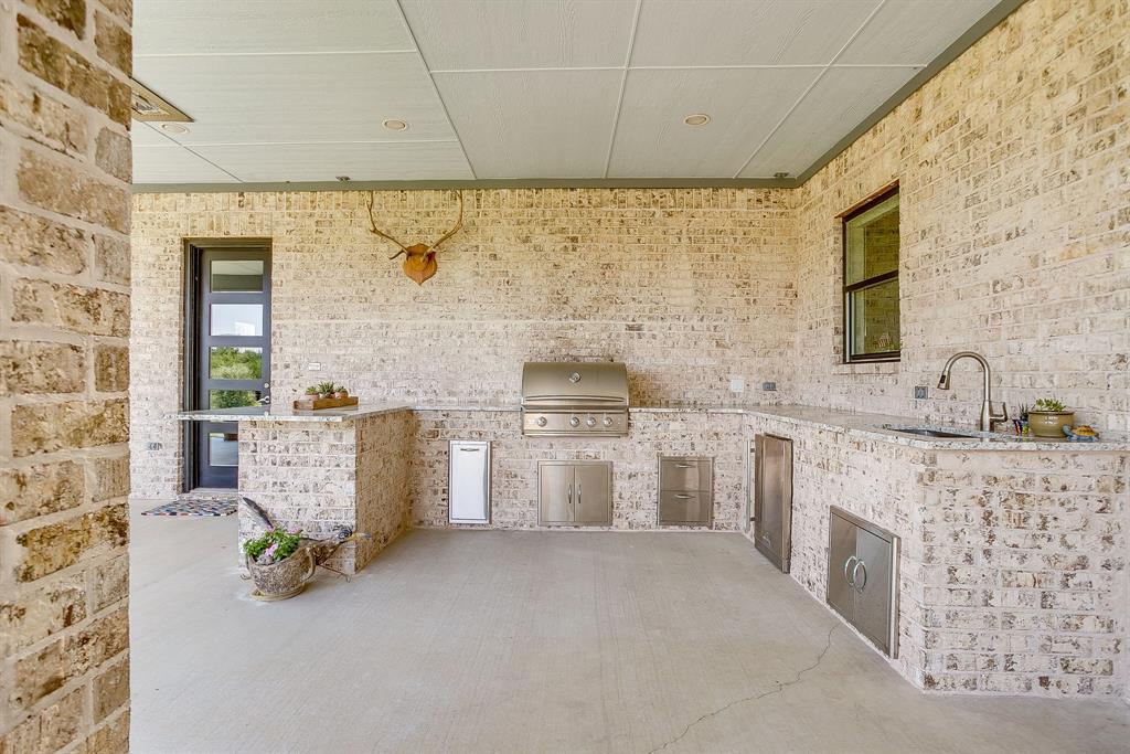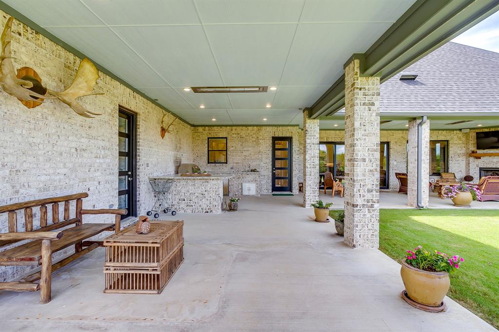 Outdoor living takes center stage with a spacious veranda with a large brick gas fireplace, built-in cieling heaters, and a full outdoor kitchen for year round entertaining.