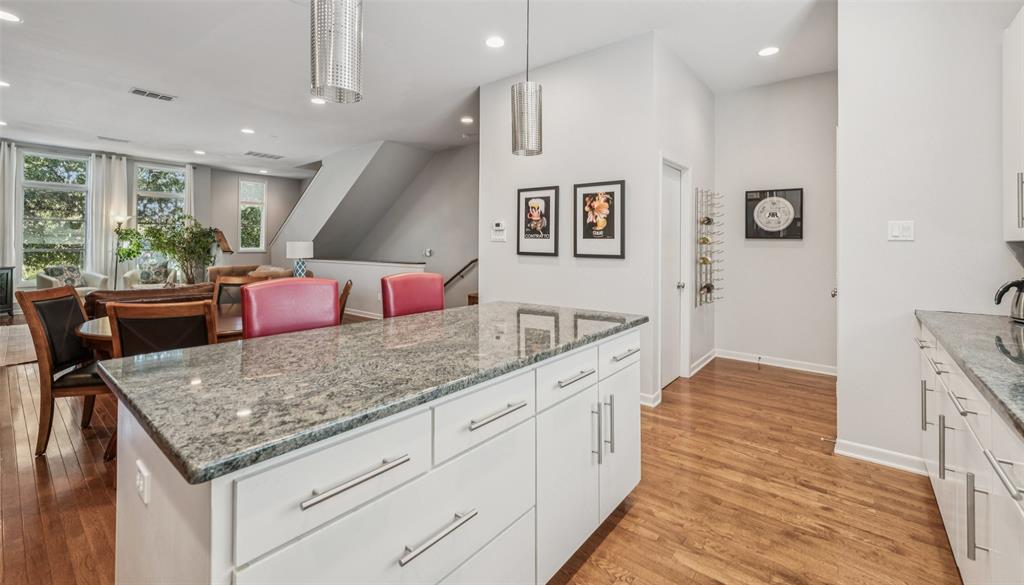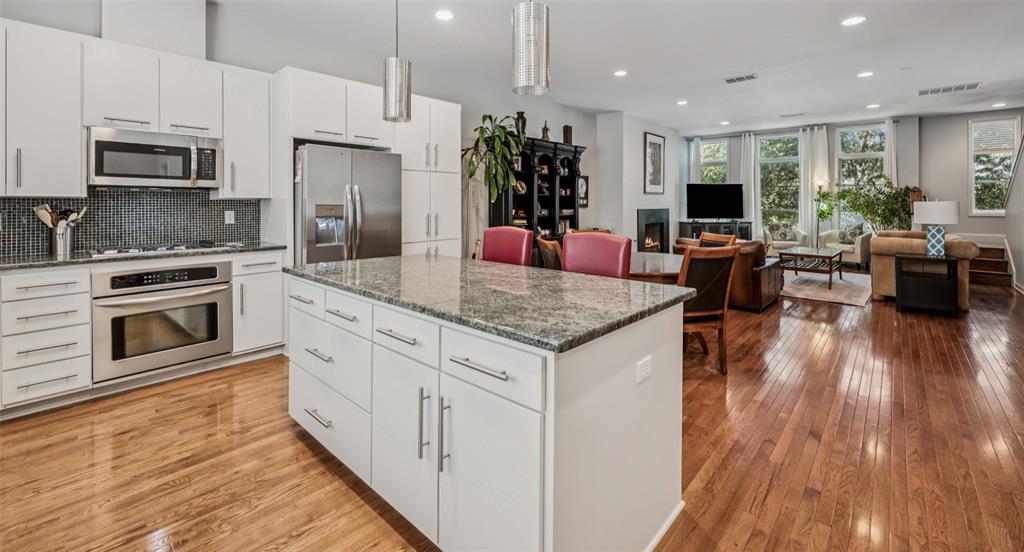 Welcome home to this modern custom three story townhome one block from Magnolia with a rooftop patio overlooking downtown! Step inside to the first floor entry with hard wood flooring. Private bedroom on first floor with attached bathroom and access to the attached two car garage with extra storage areas. Venture up to the second floor open concept living with 12 foot ceilings, floor to ceiling windows, hardwood flooring, large custom kitchen with gorgeous granite granite counter tops, gas stove, high end appliances, and oversized island. The kitchen, dining, and living room are spacious and inviting with plenty of natural light and a gas burning fireplace. Second floor also offers a guest half bathroom and laundry room for convenience. The third floor offers the expansive primary suite with plantation shutters that open out onto a private patio. Primary bath includes two separate vanities, a large walk in shower, garden tub, water closet, and attached walk in closet. Also on the third floor is a landing area currently used for a home office. There is a winding metal staircase up to the rooftop patio that overlooks downtown Fort Worth. Bring your belongings and easily move in to this well taken care of townhome that is luxurious and in a great location at MAGNOLIA GREEN! Walking distance to the hip local Magnolia shops, restaurants, coffee shops, and bars. Right across from a beautiful park with mature trees. Grab your favorite realtor today and come see this BEAUTY! Listing information is deemed reliable. Buyer or buyer's agent to perform due diligence including schools, square feet, room size, etc.