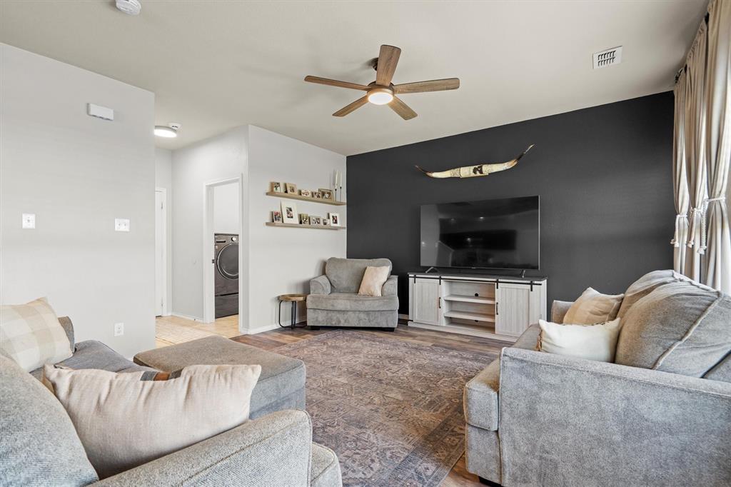 Welcome to 216 Meadowlands! This spacious, two story home has so much to offer. Built in 2016, this floorplan provides space to work from home, entertain and relax! Private front office with sliding barn doors and large window allowing tons of natural light in. Open kitchen features granite countertops, stainless steel appliances, island with room for seating and a large eat in dining area. Cozy living room featuring a wall of windows and open to the kitchen and dining area--perfect for entertaining guests! Half bath and utilitiy room in hallway leading to the garage. Primary bedroom and bathroom upstairs separated from the secondary bedrooms by a large open game room at the top of the stairs. Great sized primary bedroom, dual sinks and large tub shower combo in the bathroom. Huge walk in closet! Game room can be used as a play room, second living space or other flex space options. The backyard features a covered patio AND extra patio space beyond the covered area. A great sized lot for this neighborhood! Plenty of space for play equipment or for pets to run. Community features include jogging paths, a greenbelt and playground. Beautiful curb appeal, lots of space and move in ready!