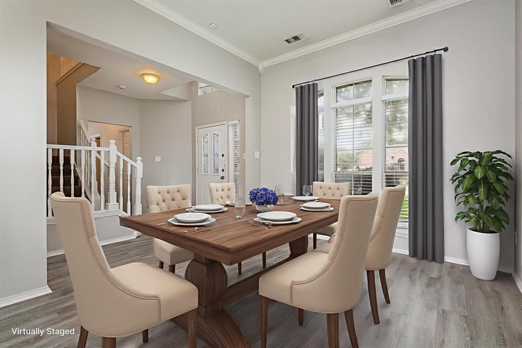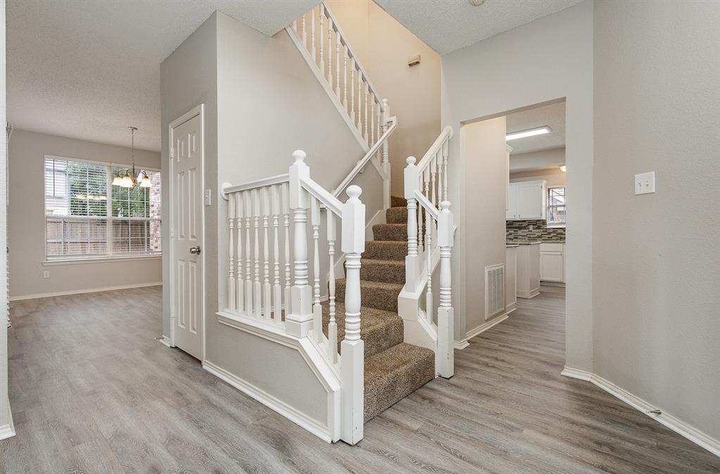 Welcome to the Highland Oaks neighborhood of Flower Mound. This home offers three beds, two in a half baths on a generous interior lot. Inside, hardwood floors flow through the living areas where the brick fireplace is the focal point. The open kitchen, with a an island provides functionality, with a separate dining nook, and living room overlook the backyard. Upstairs are three bedrooms and two full baths with a half bath on the main level for convenience. The neighborhood is known for its parks, walking trails, and convenient access to I-35E, offering both suburban serenity and easy commutes to Dallas–Fort Worth amenities. *Some photos have been virtually staged, items will not be at the property.