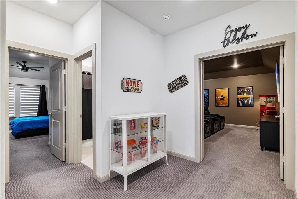 Movie lovers will fall in love with the fully furnished media room, complete with recliners, an 85 inch TV, media cabinet, electronics, and a popcorn machine; And upstairs, the fun continues in the game room with a pool table and seating area - Best of all, this all stays with the home!!!
