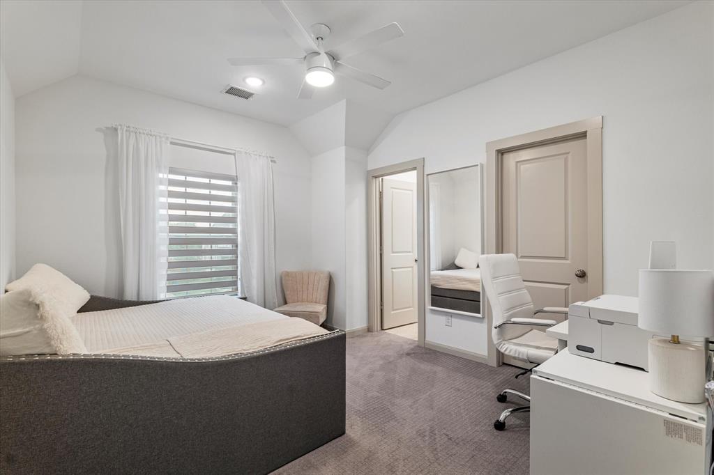 The primary suite offers a true retreat, complete with a custom built-in closet system designed for both elegance and efficiency. A guest suite on the main level adds comfort and convenience for visitors.