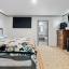 Large primary bedroom, has an amazing primary bathrooms with garden tube, separate shower and walk in closet.