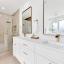 All four bathrooms have been completely reimagined with designer luxury porcelain tile, new plumbing fixtures, and quartz vanities. The primary bath features a spa-like standalone tub for ultimate relaxation as well as a frameless glass shower.
