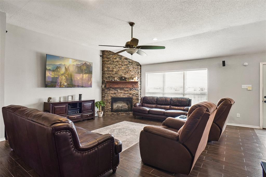 Step into this beautifully updated single-story home where style, comfort, and functionality come together seamlessly. From the moment you enter, you’ll be welcomed by an inviting open floor plan with a cozy living area centered around a stunning electric stone fireplace—perfect for both relaxation and entertaining. Enjoy new flooring throughout, plush carpeting in the bedrooms, and stylish updates such as modern doors, premium hardware, granite counter tops in the kitchen and sleek Kohler faucets, bringing a luxurious touch to every room. The home is wired for 32 speakers, offering an immersive sound experience ideal for music lovers and entertainers. The thoughtful split-bedroom layout offers privacy, with a spacious primary suite featuring a large walk-in closet and plenty of room to unwind. The oversized laundry room adds functionality with ample space and convenience. Recent upgrades, including new plumbing and a full property sprinkler system, provide added peace of mind. Step outside to your private backyard retreat, complete with a cedar privacy fence, partial astro turf for low-maintenance living, and a beautifully designed layout perfect for entertaining or relaxing in style. This move-in-ready home is packed with premium upgrades. Don’t miss your chance to make it yours!