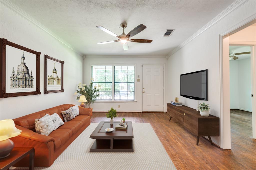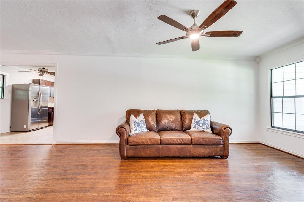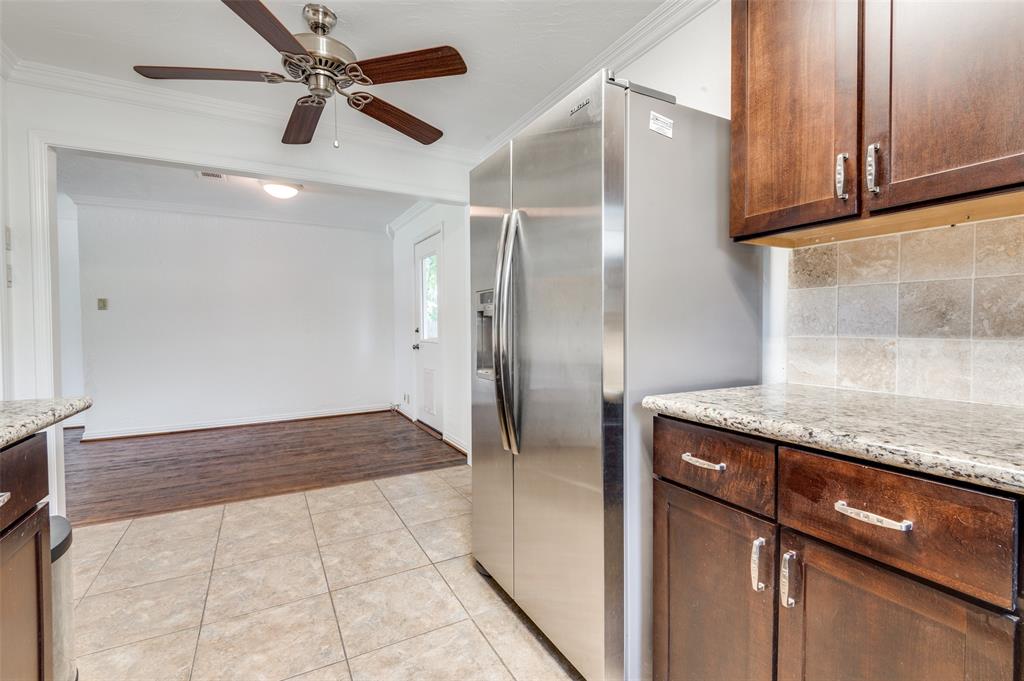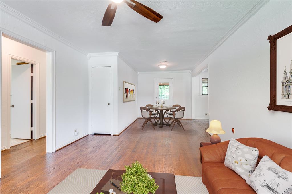 Lovingly cared for by the same owner for 40 years, this picture-perfect home is full of warmth, charm, and character. Inside, you’ll find gleaming original hardwood floors, fresh paint, and a light-filled floorplan that feels open and inviting. A cheerful breakfast nook flows effortlessly into the kitchen and living areas, where rich wood kitchen cabinets and classic crown molding add timeless appeal. The kitchen is outfitted with clean steel appliances—including a refrigerator and wine fridge—combining modern convenience with classic style.