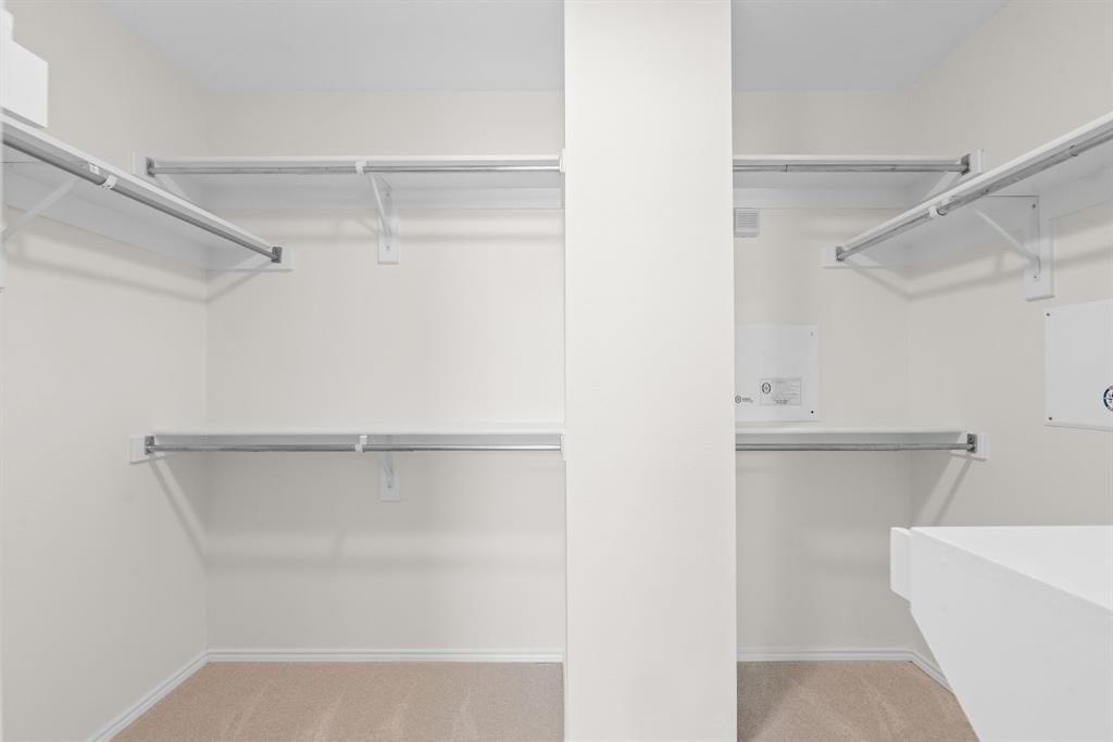 Two generous living spaces on the main floor provide room to relax, work, or entertain, with a stunning see-through fireplace serving as a warm and elegant focal point between them.