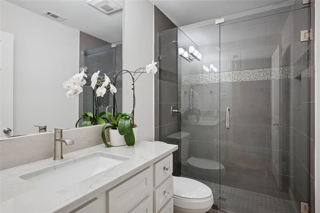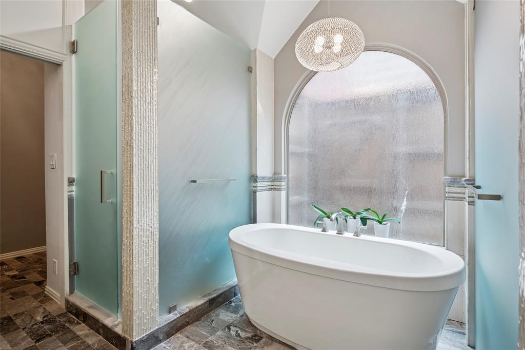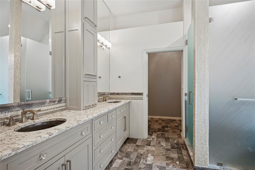 Oasis-like primary bedroom boasts ensuite bath featuring a free standing Maxx tub, dual vanities, separate walk-in shower, linen closet storage. Two additional bedrooms provide flexibility for guests, office or hobbies. Guest bath offers stylish lighting, walk in shower and quartz counter top.