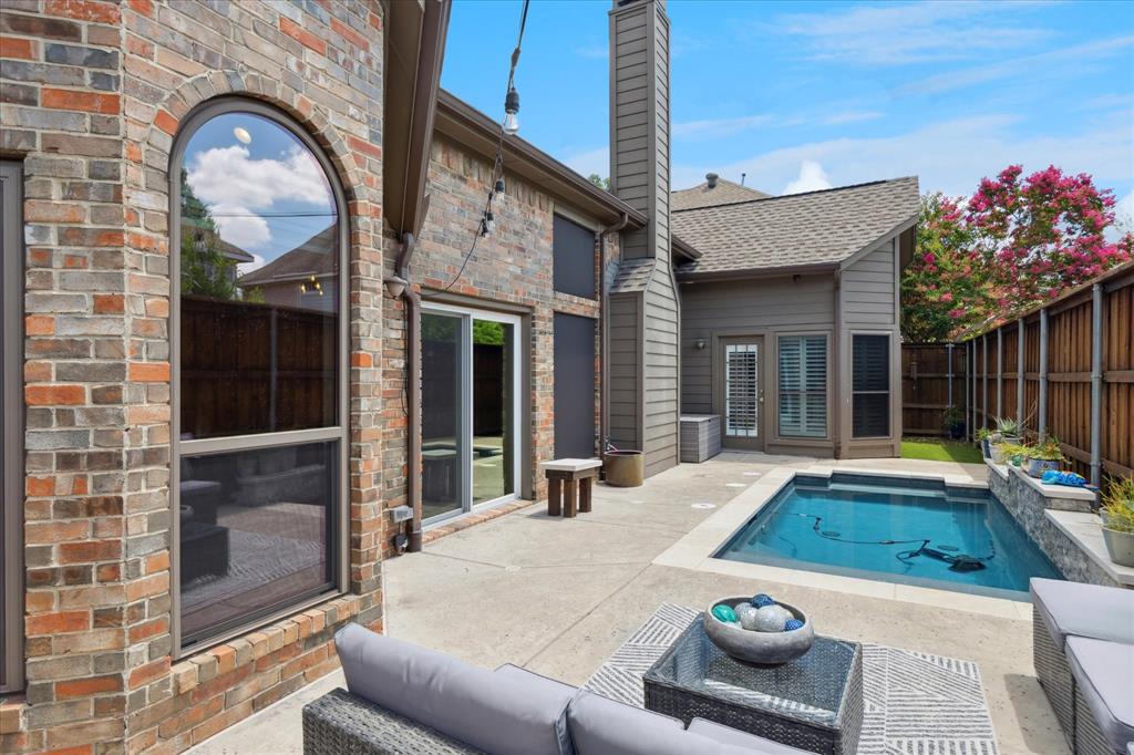 One story, one-of-a-kind Addison retreat with pool! Located on desirable corner lot this property is a move-in ready 3 bedroom, 2 bath home. A modern, 8’ft iron and glass front door leads you into light filled open floor plan. Soaring ceilings accent the thoughtfully designed living space.