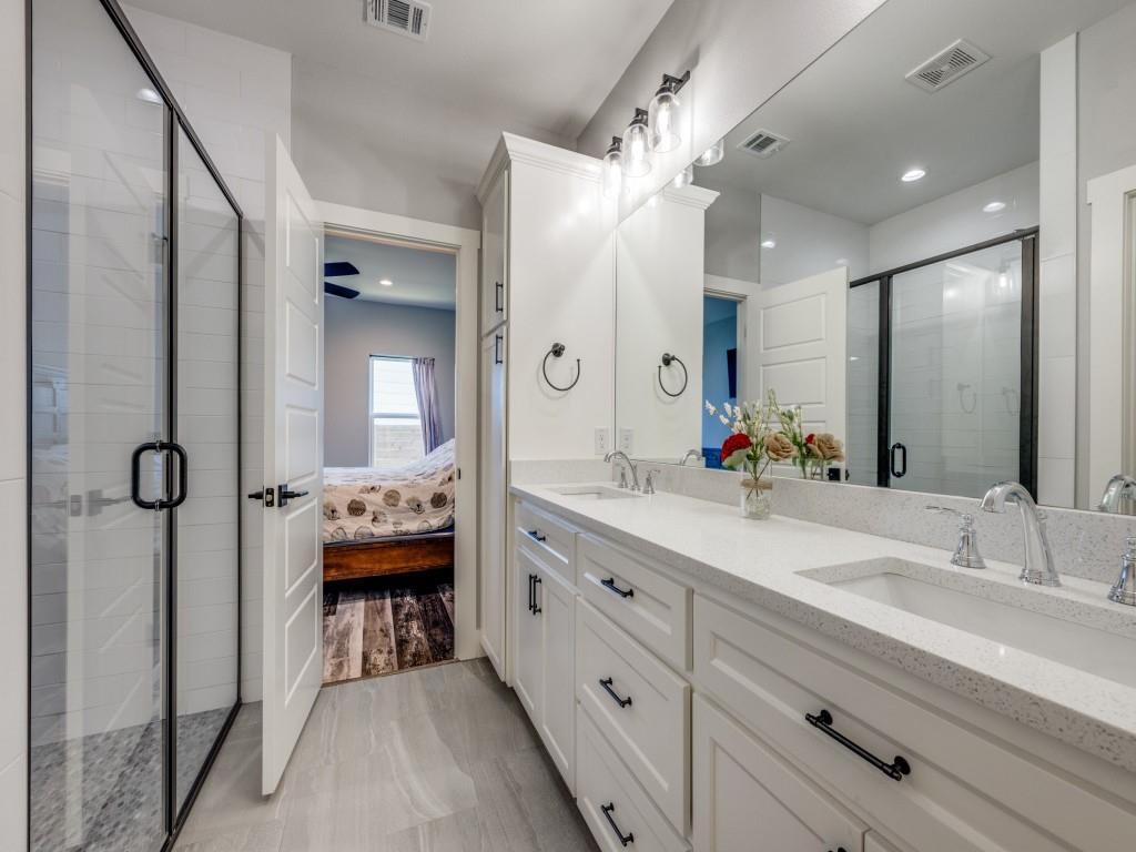 This beautiful 3-bedroom, 2-bath home is full of charm, comfort, and high-end style—perfect for easy, everyday living. Step inside and you’ll love the open floor plan that feels bright, cozy, and welcoming. The kitchen is a real show-stopper with quartz countertops, custom cabinets, stainless steel appliances, and a big walk-in pantry. It’s the perfect space to cook, eat, and spend time with family and friends. Every detail in this home feels fresh and upscale—from the luxury vinyl plank floors to the sleek tile. And guess what? There’s no carpet anywhere, making it easy to keep clean! This home was built to save energy, keep bills low, and your home comfy all year long. Tucked into a quiet new neighborhood just behind Sherman Town Center, you’re close to shopping, restaurants, and even Lake Texoma for fun weekends. Come see the style and comfort for yourself—this home is ready for you!