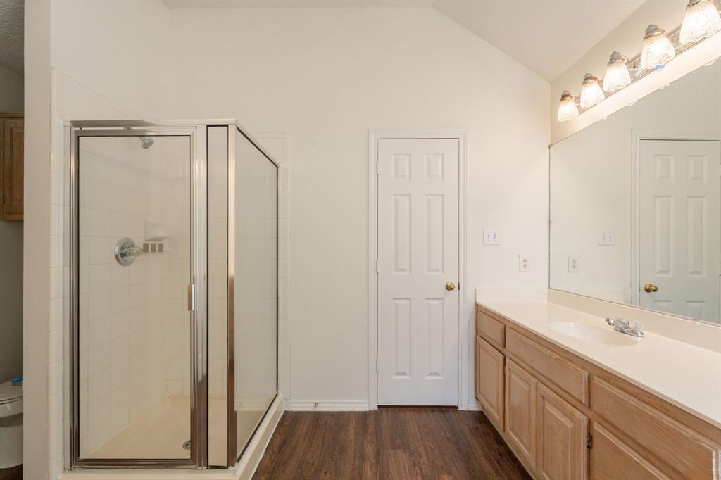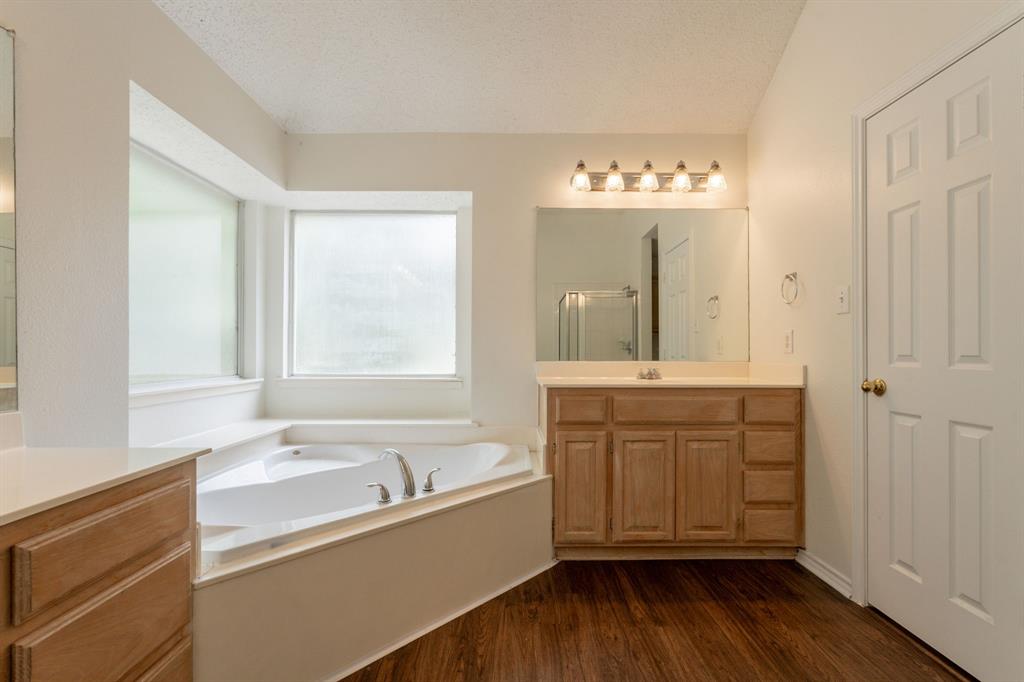 Charming 3-bedroom home nestled in a quiet Flower Mound cul-de-sac, backing to a peaceful greenbelt with mature trees for added privacy. Step inside to find a spacious living room with large windows, an open-concept kitchen with island and breakfast bar, and a dining area perfect for gatherings. The upstairs primary suite offers a retreat-like feel with dual vanities, garden tub, and walk-in closet. Two additional bedrooms share a full bath, and there’s a convenient powder room on the main floor. Enjoy the private backyard and the serene, tree-lined surroundings. Located in Lewisville ISD with quick access to shops, restaurants, and parks. A great opportunity in a desirable community!