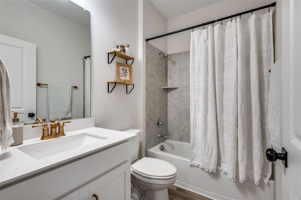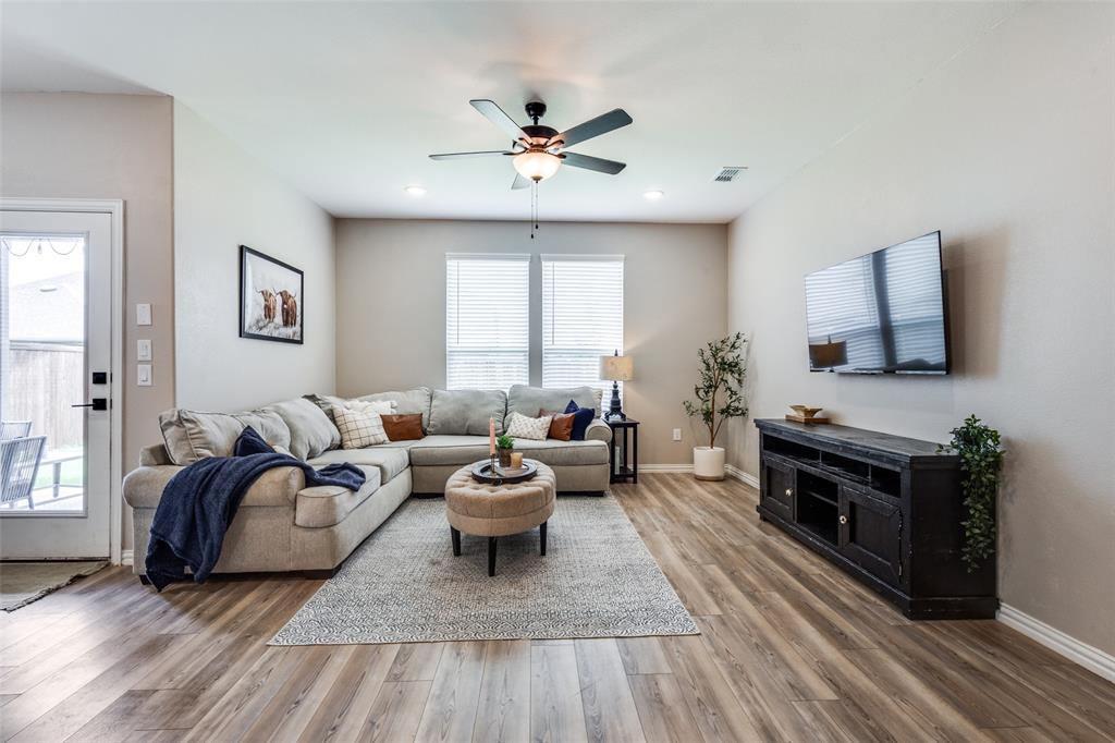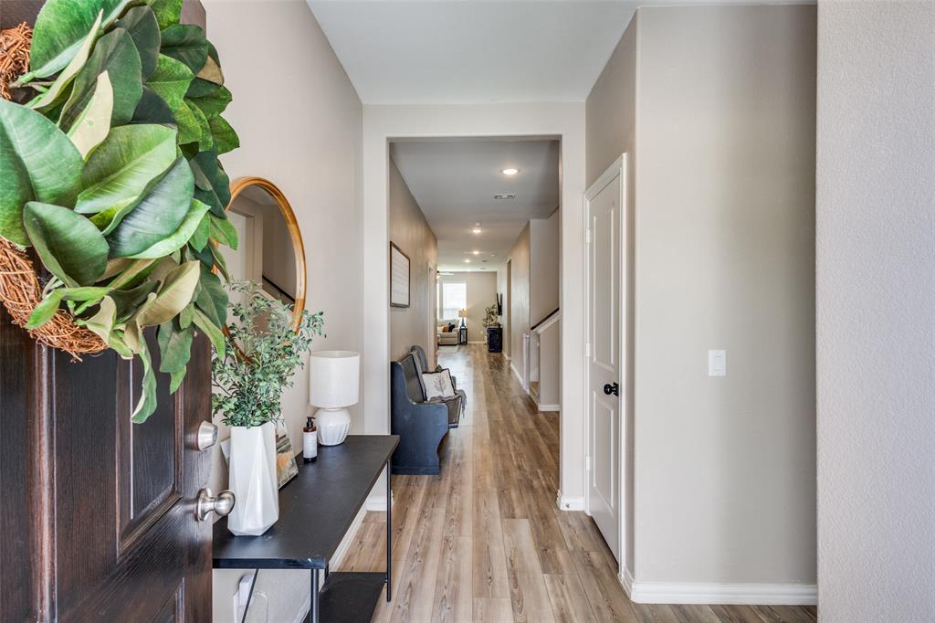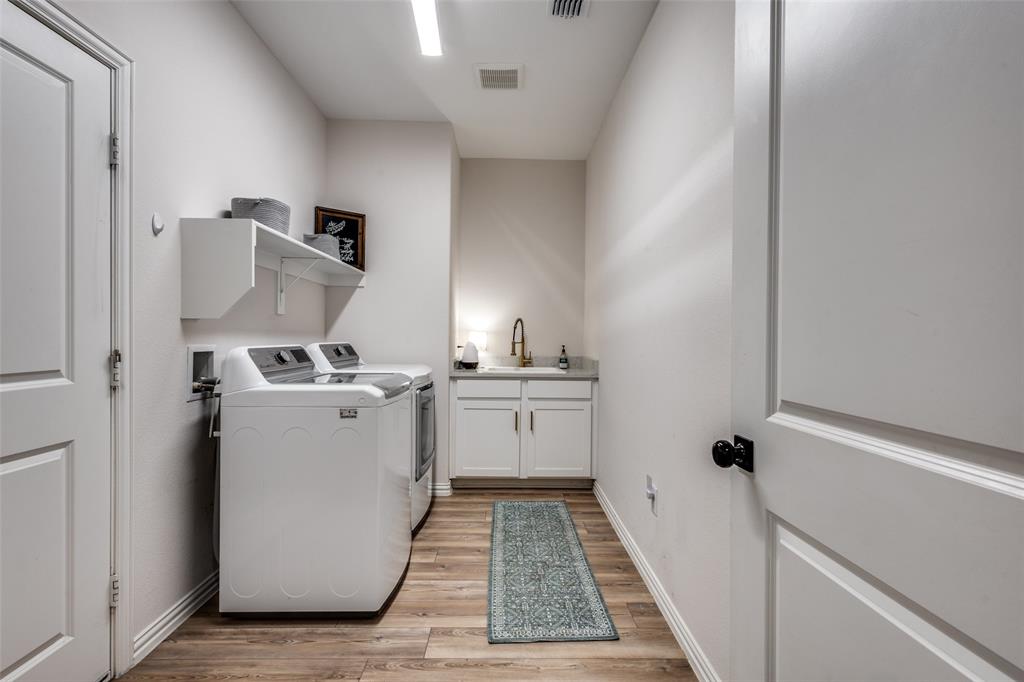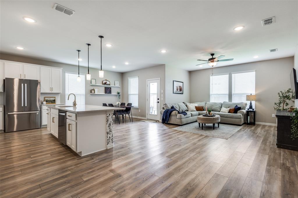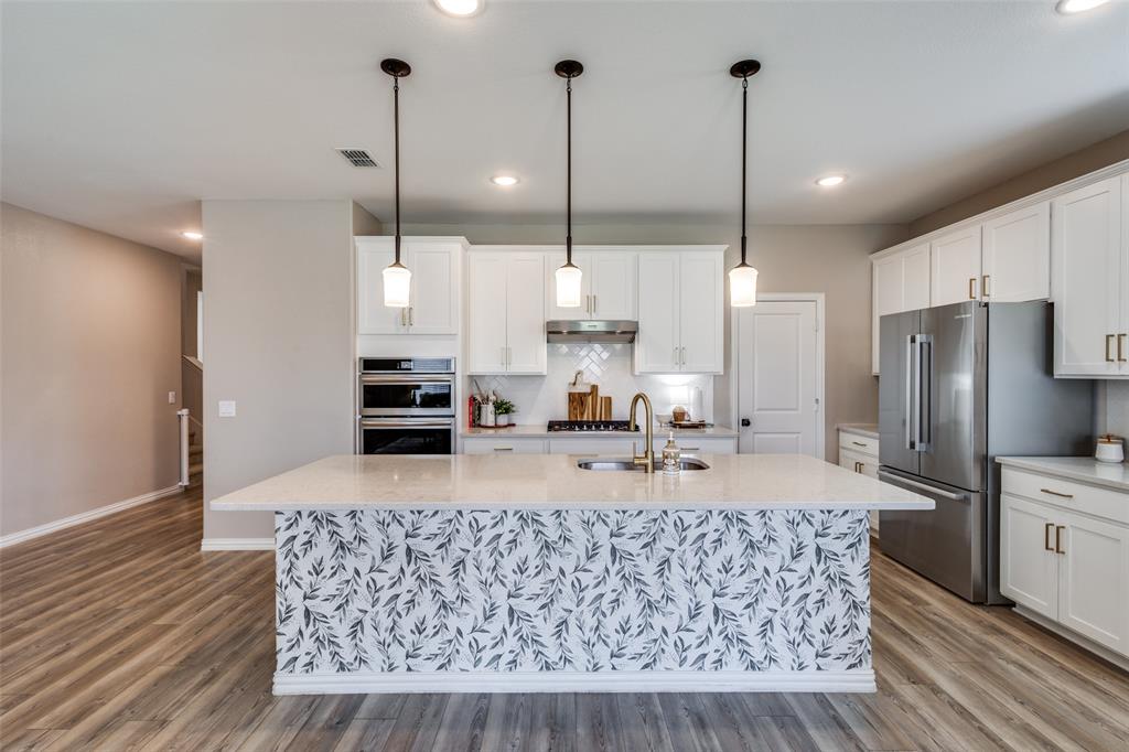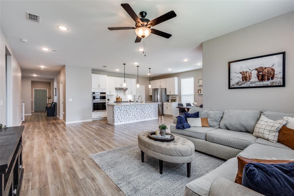 ASSUMABLE LOAN! 5 bedroom home - with primary and guest bedrooms both downstairs - this could be your top choice! Luxury vinyl plank flooring throughout the downstairs with carpet in bedrooms! Gorgeous kitchen has quartz counters and stainless appliances! Huge island with serving bar too! Oven just replaced! Refrigerator, washer and dryer can stay! Spacious laundry room just off kitchen and near garage with a sink as well! Primary bedroom has windows overlooking the backyard with ensuite bath with a stand-up shower and huge walk-in closet. Neutral colors throughout! Separate flex space near entry can serve as dining room or home office - or home school space too! Upstairs has three bedrooms and a large game room space too! Upstairs bath with tub! The guys will love the epoxy floor in garage! Sprinkler system and window coverings! Walk a short half mile to the elementary and middle schools! Nearby neighborhood fountain for visual fun!