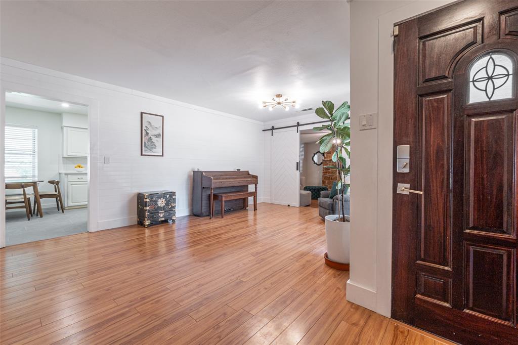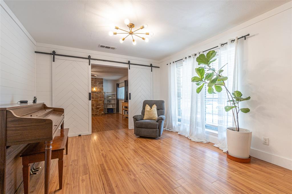 Inviting and stylish Mid-Century Modern located in the heart of Lake Highlands and zoned to highly rated Wallace Elementary (RISD), this beautifully updated home blends classic charm with modern functionality. The updated kitchen features quartz countertops, a custom subway tile backsplash, updated appliances, and spacious laundry area with abundant storage. Living spaces offer great versatility. A generously sized living room with an additional exterior door and attached third bath could serve as a fourth bedroom or media-entertainment room. The primary suite includes a walk-in closet and an ensuite bath with mid-century period tile. The third bedroom features an attached study or kids playroom, overlooking the lush backyard and large patio. The backyard also includes a versatile detached workshop or potential private home office, with new flooring, extra attic space, electric and air conditioning. Unbeatable locale just minutes from White Rock Lake, trendy shopping, dining, and major thoroughfares. This home delivers location, flexibility, and timeless appeal in one of Dallas’ most desirable neighborhoods.