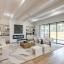 The open-concept kitchen is a chef’s dream with light wood cabinetry, quartz countertops, a bold black vent hood, built-in fridge, commercial gas range, and a walk-in pantry with custom built-ins — all overlooking the dining and living areas. The living room features ceiling beams, built-ins, a 60” gas fireplace, and sliding doors that open to a covered patio with an outdoor kitchen and low-maintenance turf yard. The main-level primary suite includes a walk-through shower, soaking tub, dual vanities, and a custom walk-in closet. Upstairs offers a media room, game room with wet bar, and three additional bedrooms — one Jack-and-Jill, and one with its own private bath.