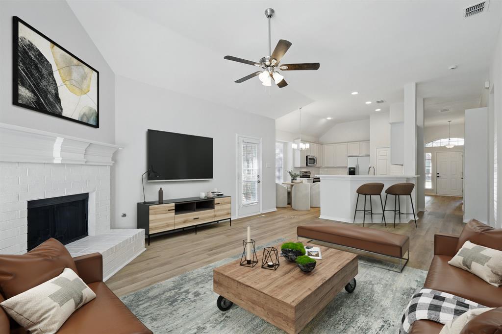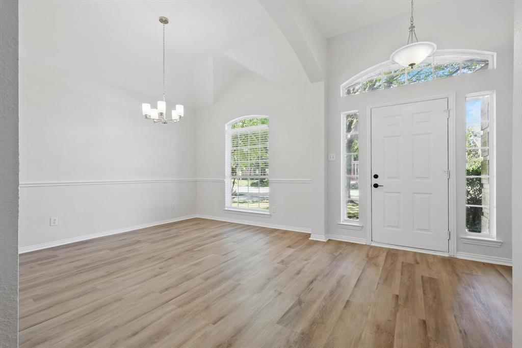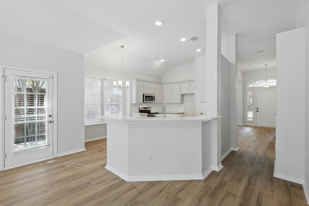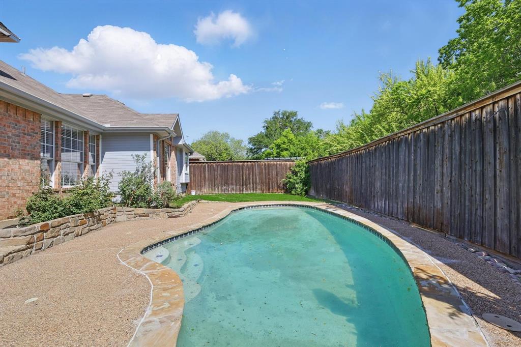 Fully remodeled home with a private backyard oasis, nestled in a prime Lewisville location with no HOA! This 3-bedroom, 2-bathroom gem offers 1,714 sqft of thoughtfully designed living space and backs to a peaceful greenbelt for added privacy. Inside, you’ll love the open floorplan, soaring ceilings, LVP flooring throughout, and abundant natural light that fills the home. The spacious living room features a cozy fireplace, perfect for relaxing evenings. Calling all home chefs – the kitchen is a dream with stainless steel appliances, quartz countertops, a pantry, and ample cabinet space. The private primary suite includes a large walk-in closet and a spa-like ensuite bath with a garden tub, walk-in shower, and double vanity. Step outside to your fully fenced backyard with new sod, an in-ground pool, and plenty of space to entertain. Recent updates include fresh interior paint, new counters, a brand-new water heater, and more. Located just steps from scenic neighborhood walking trails and offering easy access to I-35E, shopping, dining, and schools – this one checks all the boxes!