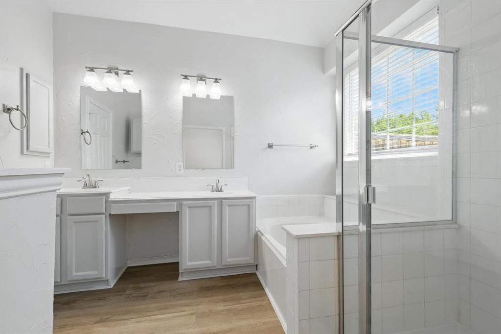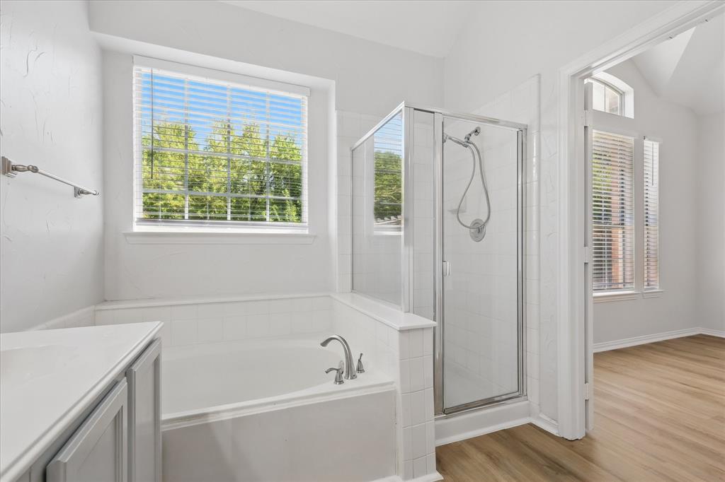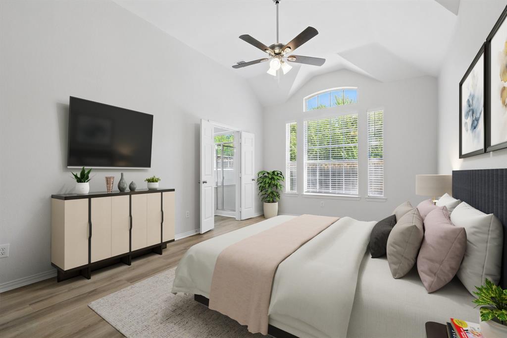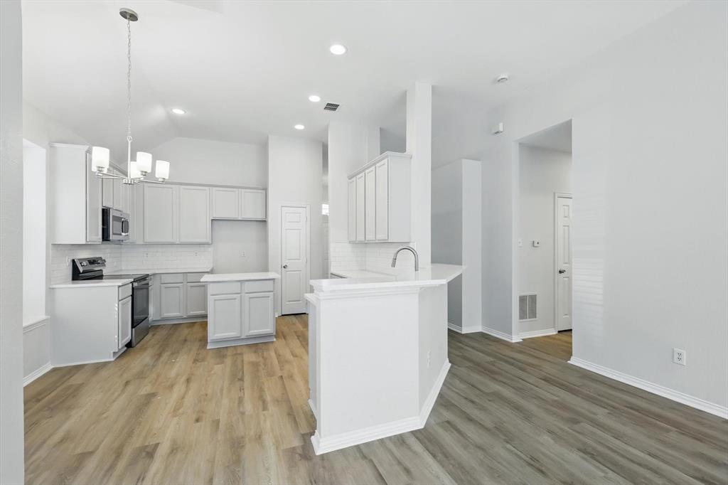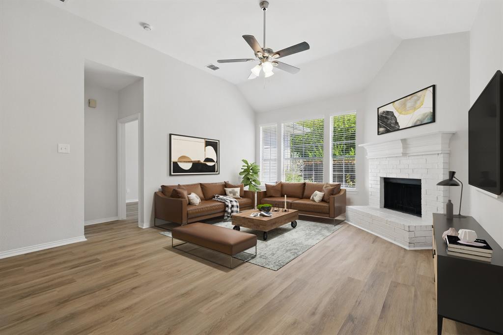Fully remodeled home with a private backyard oasis, nestled in a prime Lewisville location with no HOA! This 3-bedroom, 2-bathroom gem offers 1,714 sqft of thoughtfully designed living space and backs to a peaceful greenbelt for added privacy. Inside, you’ll love the open floorplan, soaring ceilings, LVP flooring throughout, and abundant natural light that fills the home. The spacious living room features a cozy fireplace, perfect for relaxing evenings. Calling all home chefs – the kitchen is a dream with stainless steel appliances, quartz countertops, a pantry, and ample cabinet space. The private primary suite includes a large walk-in closet and a spa-like ensuite bath with a garden tub, walk-in shower, and double vanity. Step outside to your fully fenced backyard with new sod, an in-ground pool, and plenty of space to entertain. Recent updates include fresh interior paint, new counters, a brand-new water heater, and more. Located just steps from scenic neighborhood walking trails and offering easy access to I-35E, shopping, dining, and schools – this one checks all the boxes!