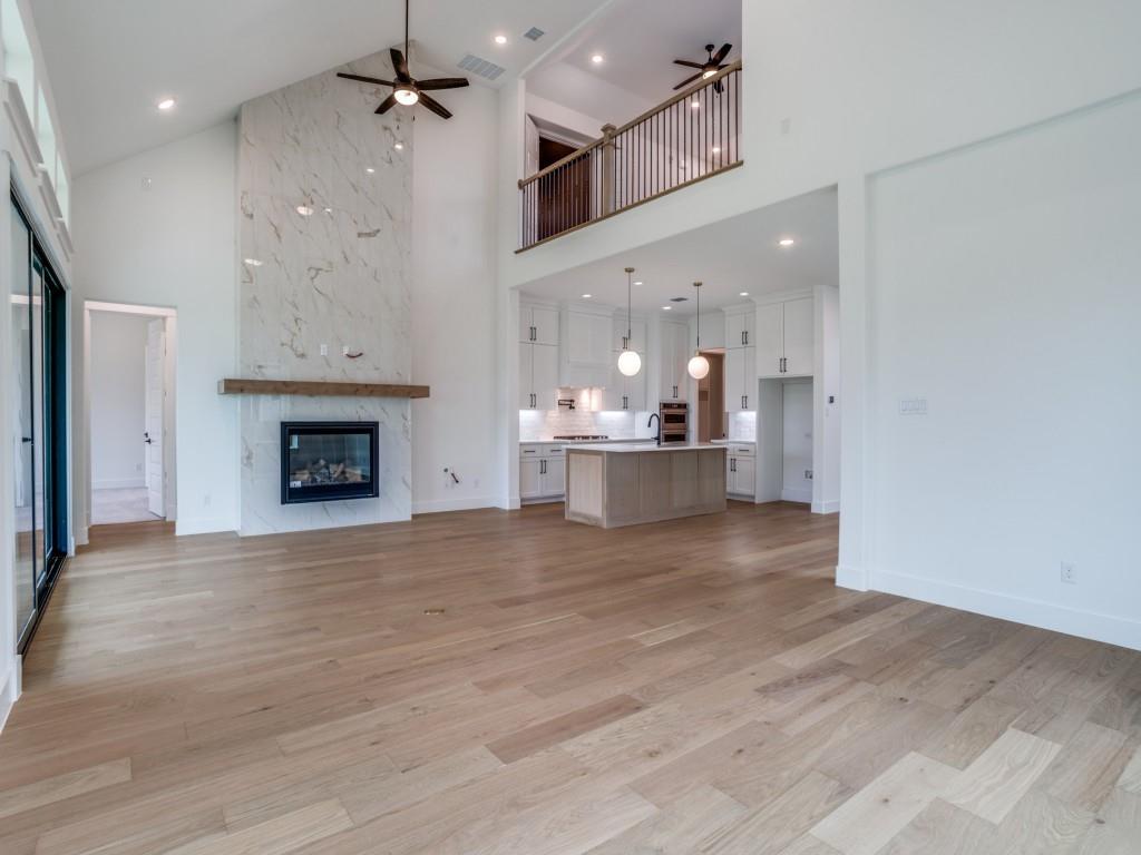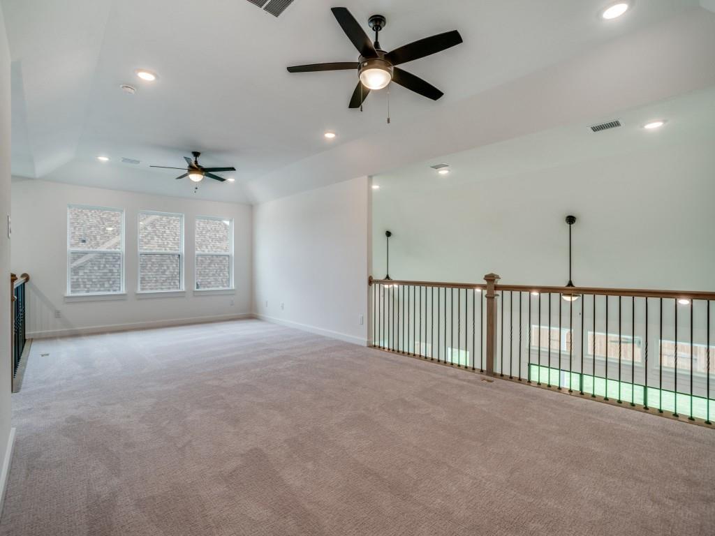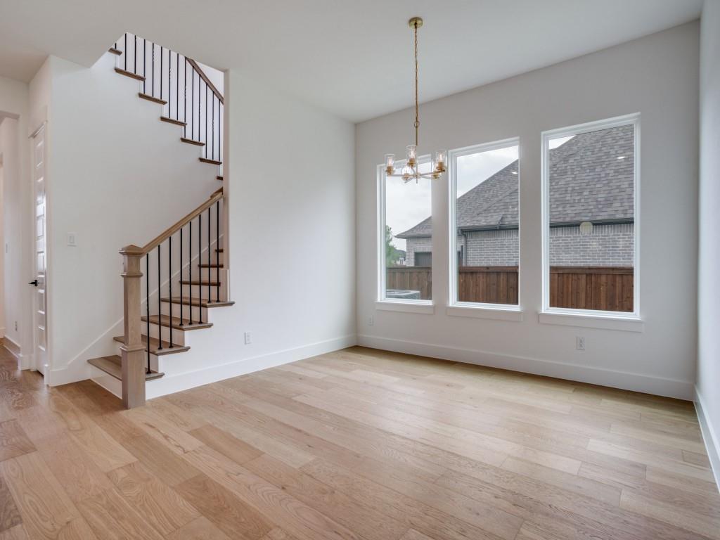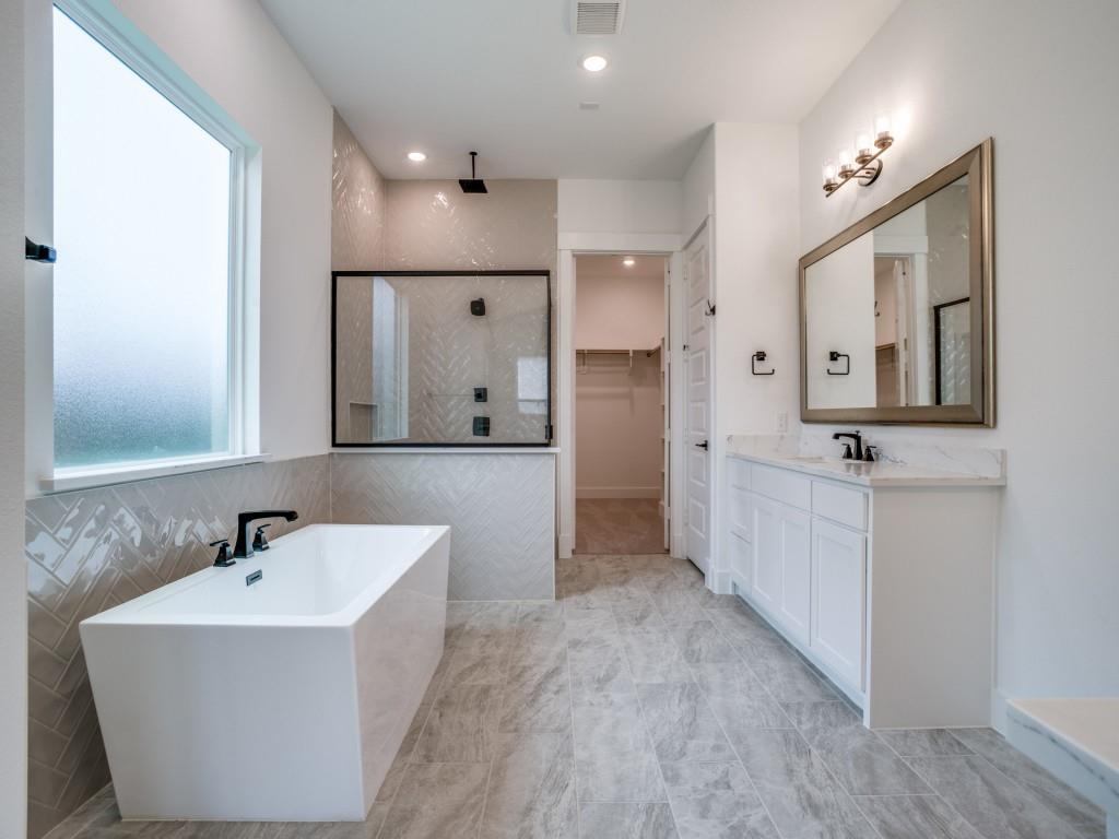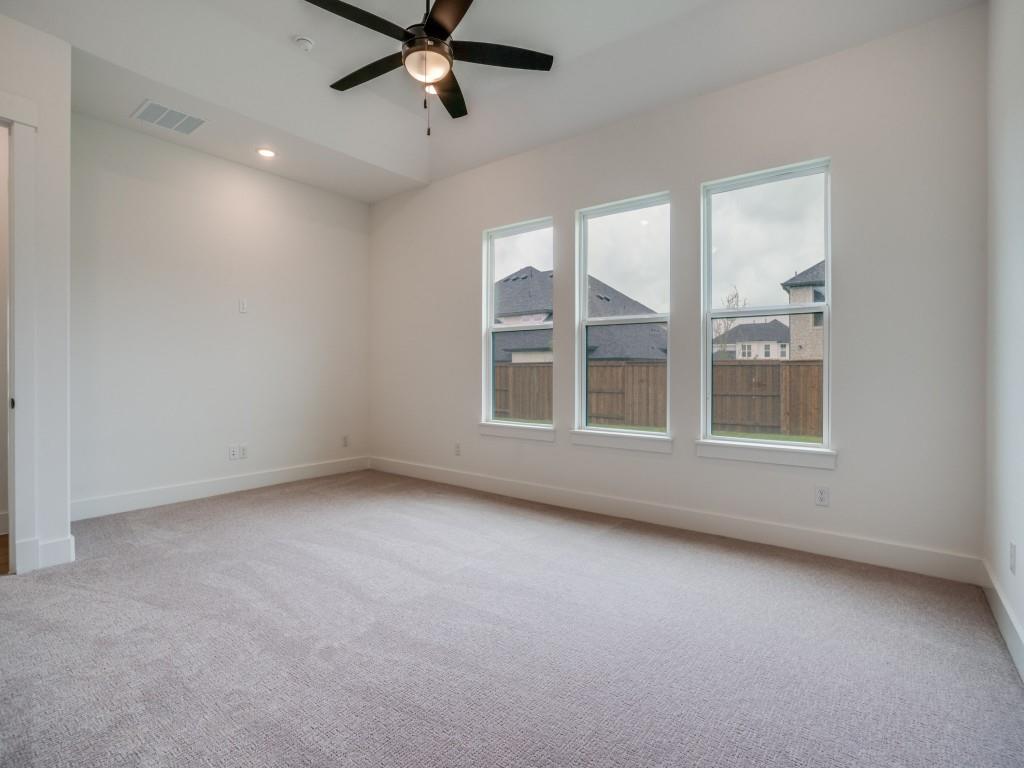 RISLAND HOMES BELVEDERE floor plan. READY NOW! Highly sought-after layout in the heart of Prosper! Picturesque bright-white farmhouse elevation on oversized lot. Complimentary brick & black painted accents on beautifully landscaped East facing interior lot! Generously sized porch offers enough space for 2 so early mornings can be enjoyed alongside a loved one, coffee & that one-of-a-kind Texas sunrise! Front door opens to a wide foyer hall leading to inviting living space. Exercise your culinary expertise in this kitchen complete with KitchenAid appliances, pot filler, waterfall island, & white cabinetry! Adjacent to the kitchen of your dreams is the family room where memories are waiting to be made! Floor-to-ceiling tiled fireplace accentuates sky-high ceilings & open to below feature! Family room boasts wall of windows plus massive telescoping sliding glass door! Retreat to the primary suite - a space fit for comfort & rejuvenation! Enjoy the free-standing tub, floor to ceiling tiled shower finished with rainfall showerhead, and TWO large walk-in closets! One primary closet is connected to the larger-than-life utility room! Handle business in style in this study finished with glass doors and large window! Head upstairs to enjoy the spacious game room with iron railing overlooking the family room. Huge media prewired for those movie nights and sleepovers! Four bedrooms grace this gorgeous home with two down and two up – one ensuite bedroom located upstairs! The two-car garage has a spacious extra storage nook to organize or use as an open area for workout equipment! Home has engineered hardwood flooring in all common spaces and carpet in all bedrooms for maximum comfort! New Prosper ISD Elementary school is located within the community with plans for opening Fall 2025! Enjoy amenities with clubhouse, infinity pool, work out room, yoga lawn, playground, pond and walking trails. See this home anytime from dawn to dusk through the NterNow system!
