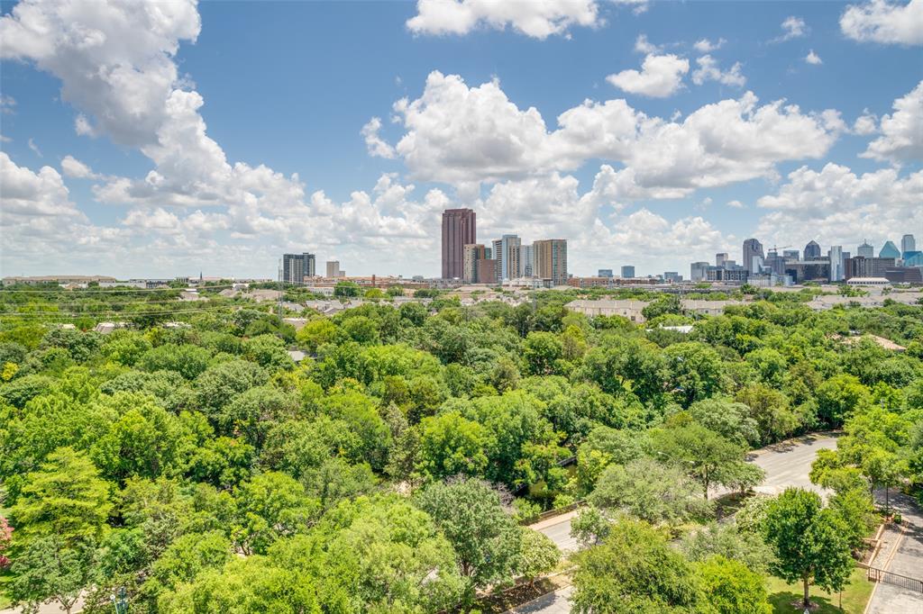 VERY Popular and RARELY available -05 unit! ***Full YouTube Video Tour can be texted to you*** Million dollar Turtle Creek address! This gem of a unit has striking views overlooking Turtle Creek and a glimpse of downtown's iconic skyline. Abundant storage with huge closets in the entryway and the dressing area! Be sure to check out the floorplan... this home's entryway begins with an 8' tall solid door with beautiful bronze hardware and unit number plaque, followed by an extended Foyer - Gallery effect with abundant wall space, two designer light fixtures, diagonally laid travertine flooring, & handsome archways. The Kitchen has a JennAir commercial style gas range & hood, KitchenAid Refrigerator, KitchenAid Dishwasher, abundant cabinetry & counter space. The beautiful & light bath is separated nicely from the Living space and has marble floors, wainscoting, & shower walls nicely offset with mirrors. Custom window drapes with blackout shades and designer drapery hardware. The separate dressing area has two closets, one with a built-in closet system. The HOA is transforming the garage, repaving the upper & lower garage decks, replacing curbs & sidewalks, landscaping enhancements, new exterior lighting, rebuilding the porte-cochere, doing structural improvements at the garage among other details. HOA dues include: electric, water, sewer, trash, blanket insurance, basic cable, all building maintenance & staffing. ***SPECIAL assessment for this unit is already paid in full*** A great lifestyle in a wonderful community, and pet friendly, too! Wonderful highrise condo at a great value, won't you be our neighbor?