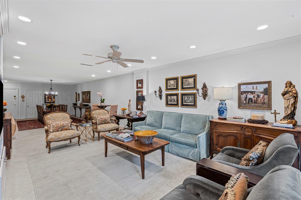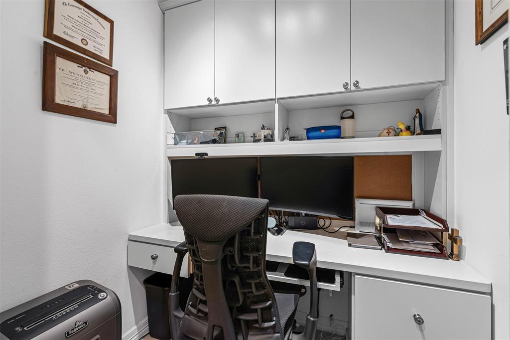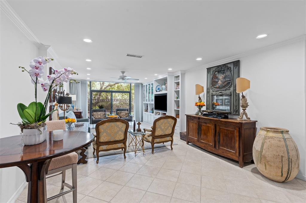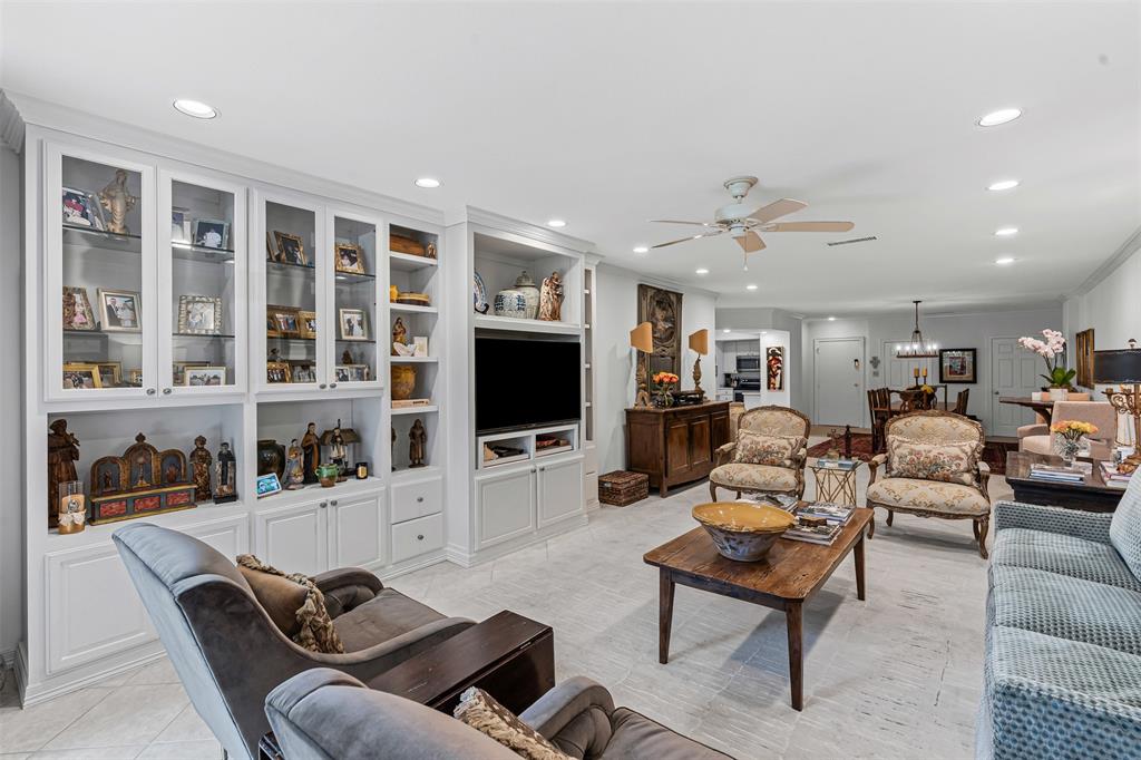 This rare first-floor gem boasts three private patios with direct access to the beautifully manicured grounds and scenic walking trail—an ideal setting for morning coffee or an evening unwind. Inside, the expansive living and dining areas flow seamlessly into a chef’s kitchen, designed for elevated entertaining. A dedicated office with built-in desk creates a refined work-from-home retreat.