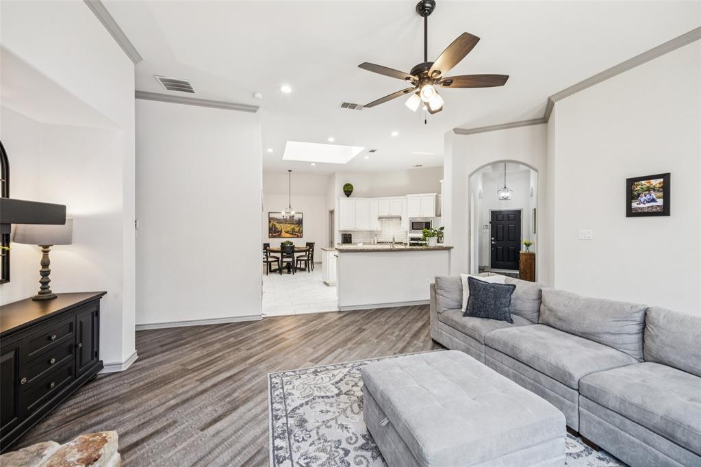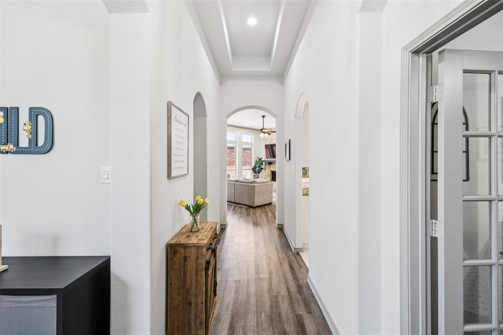 BRAND NEW roof & gutters replaced August 2025. Fall in love with this incredible ONE STORY home in Frisco ISD with an extra large kitchen for entertaining! Beautiful finishes throughout in this spacious 3 bedroom, 2 bath home with additional office and two living areas in one of Frisco’s most sought-after communities, The Trails of Frisco. From the moment you open the door you feel at home. Adjacent to the foyer you'll find a dedicated home office and a spacious playroom or second living area ideal for working remotely while still keeping the kids entertained nearby. The open-concept kitchen, dining, and living area is the heart of the home, featuring a center island, generous counter space with granite countertops, a breakfast bar, and seamless flow for entertaining family and friends. Whether you're hosting holidays or enjoying cozy movie nights, the multiple living and entertaining spaces make it easy to enjoy time together. The two secondary bedrooms are thoughtfully separate from the primary suite, offering privacy and room to grow. The master retreat is tucked away in the back of the home, providing a peaceful escape complete with a large en-suite bath featuring granite countertops and walk-in closet. Step outside to your private backyard with patio and grass space ready for weekend grilling or letting the kids and pets play. All of this is located in a quiet subdivision filled with resort-style amenities, including pools, playgrounds, and top-rated schools within the community. Walking distance to Corbell Elementary and zoned for Wakeland High School. Just minutes from the Dallas North Tollway, local shopping, dining, premier golf courses and the new PGA Frisco District with weekly events for the family. This is the place you want to come home to each day!