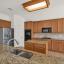 Step inside to a bright, open layout with vaulted ceilings, abundant natural light, and custom touches like art niches and raised tray ceilings. The front entry opens to a spacious living and dining area, ideal for gatherings. The kitchen is a home chef’s dream with granite countertops, ample storage, a gas cooktop, double oven, pantry, breakfast bar, and dining nook—seamlessly flowing into the family room.