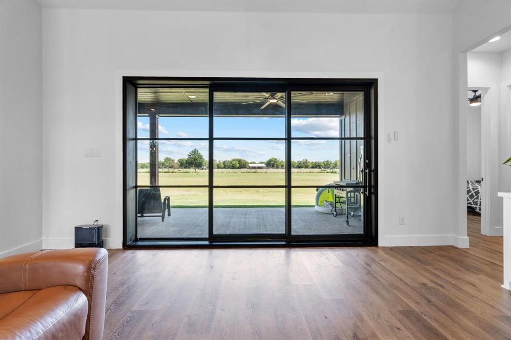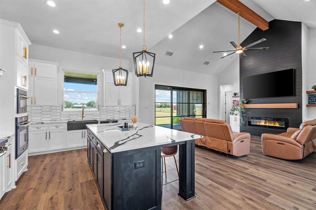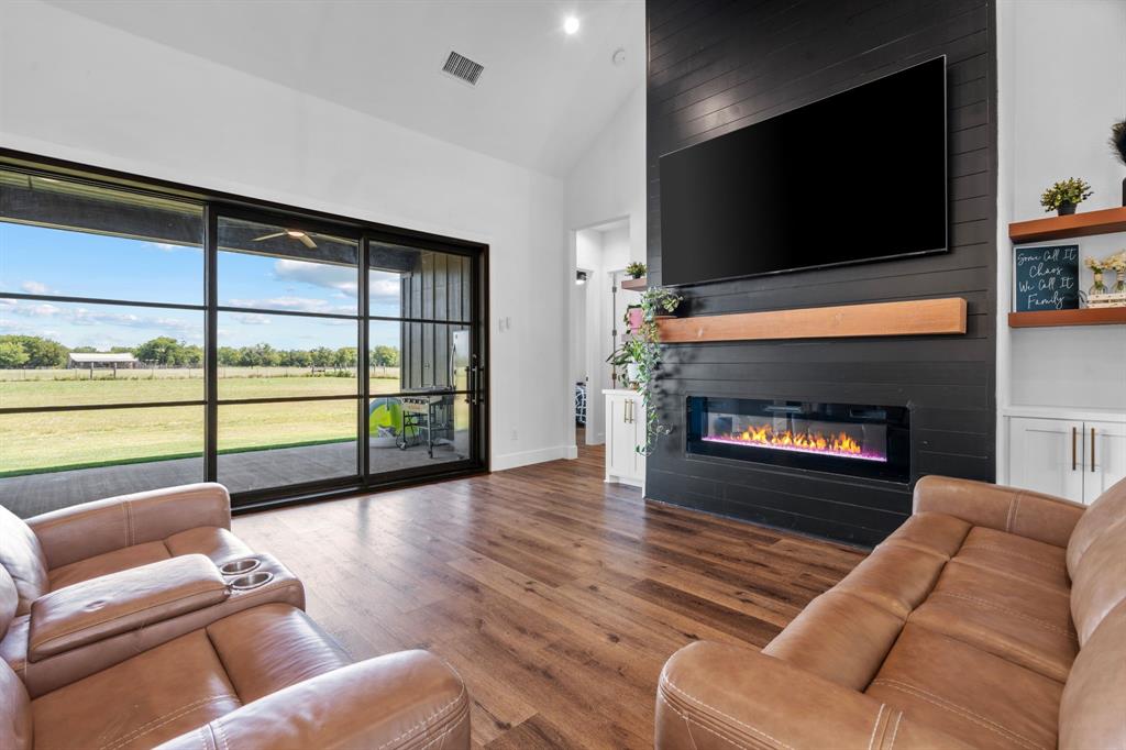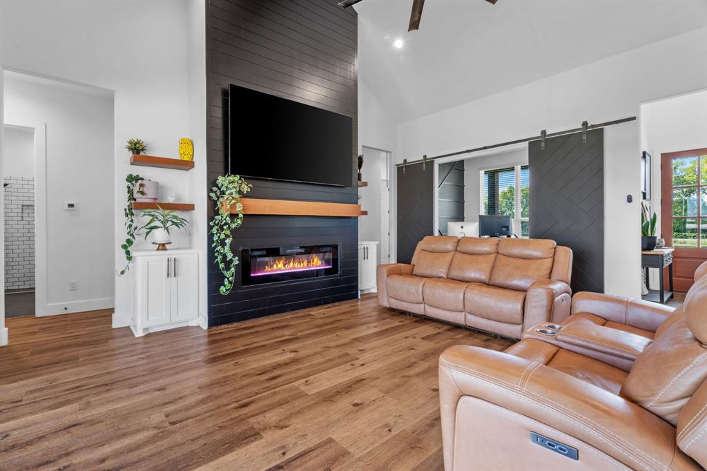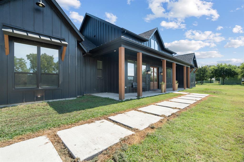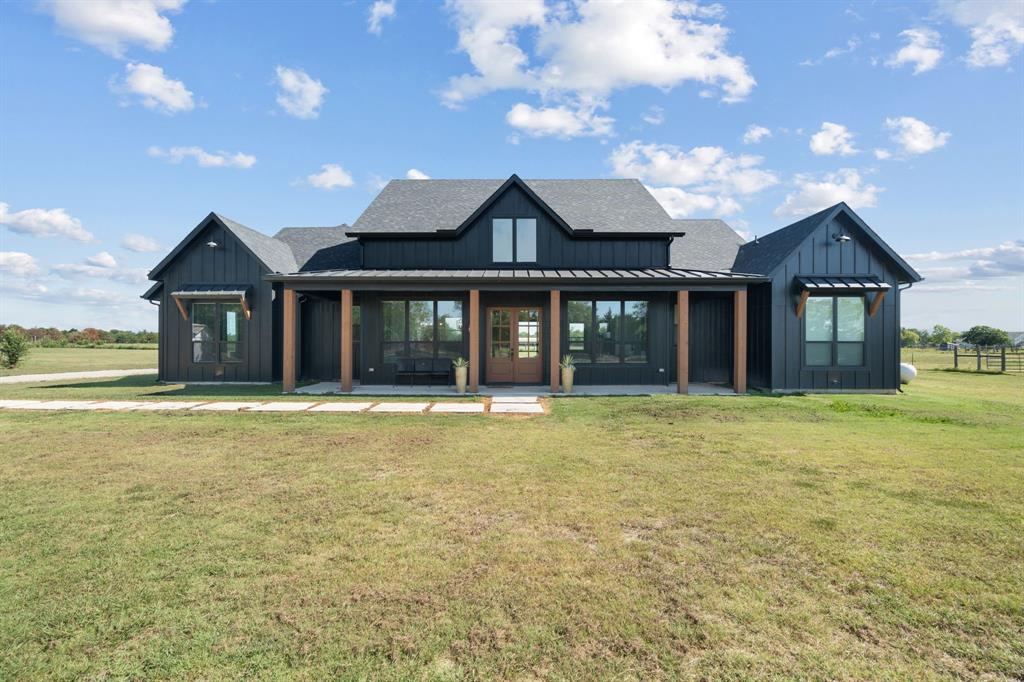 If you've been dreaming about luxurious living set against a peaceful country backdrop- this is the one! From the moment you arrive, you are greeted by a stunning black home that sits quietly on just under 3 acres, plus a renovated mobile home that together seamlessly blends bold design with peaceful, wide-open spaces. The main home offers 4 BD 3.5 BR with 2482 of space. With tall ceilings that capture the attention right away, to the exposed beams in the dining and living room, to the massive 12-foot iron sliding glass doors that stack open to create seamless indoor-outdoor living. And as if that isn't enough, the kitchen is just as dreamy. This kitchen showcases black and white calacutta quartz countertops with large center island, Z line appliances, gold accents, and plenty of storage space- not to mention custom cabinetry for pots, pans, spices, and utensils. The primary bedroom is oversized, and features a black accent wall. The primary bathroom is outfitted with his and hers vanity, large walk in shower with 3 body jets, hand sprayer& large top sprayer and also features a master toilet with bidet, water sprayers, dryer and light. If you need an office or dedicated play room- this home also provides the space. With barn door and decorative wall, whatever your needs are, this home can accommodate. From the natural wood posts framing the oversized covered porch to the high-end finishes inside, the oversized covered back patio- every detail is thoughtfully crafted.The second home is a mobile home that has been renovated, featuring 3 BD and 2 BR with 1232 sq ft. Updates include new flooring, new exterior and interior paint, new roof, new ac unit, and new toilet and vanity in the secondary bathroom. Perfect for multi generational families, or income producing opportunities. If you're looking for room to roam, space to breathe, and a home that turns heads, this is a rare mix of style, space, and seclusion—this is Texas living reimagined.