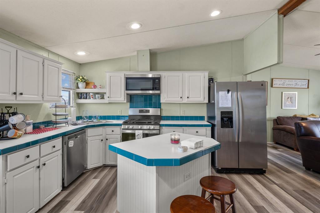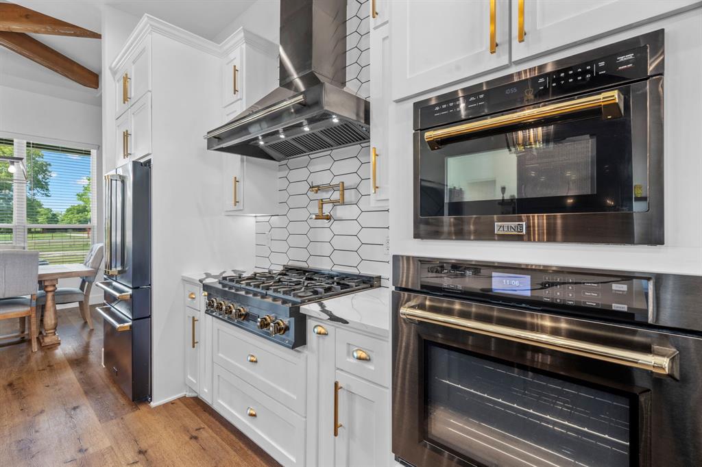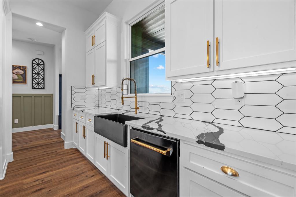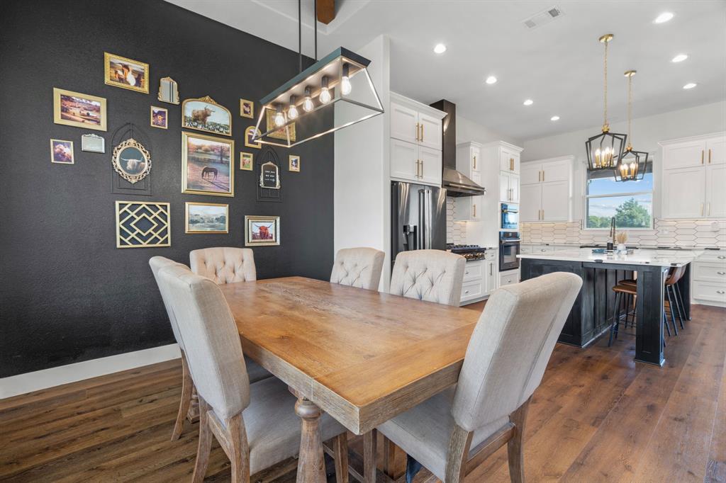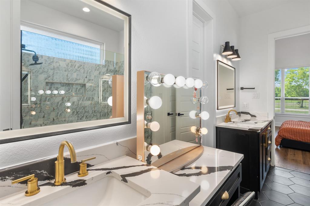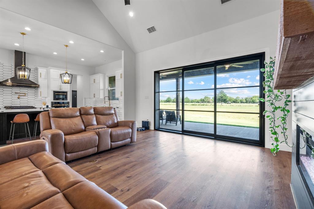 If you've been dreaming about luxurious living set against a peaceful country backdrop- this is the one! From the moment you arrive, you are greeted by a stunning black home that sits quietly on just under 3 acres, plus a renovated mobile home that together seamlessly blends bold design with peaceful, wide-open spaces. The main home offers 4 BD 3.5 BR with 2482 of space. With tall ceilings that capture the attention right away, to the exposed beams in the dining and living room, to the massive 12-foot iron sliding glass doors that stack open to create seamless indoor-outdoor living. And as if that isn't enough, the kitchen is just as dreamy. This kitchen showcases black and white calacutta quartz countertops with large center island, Z line appliances, gold accents, and plenty of storage space- not to mention custom cabinetry for pots, pans, spices, and utensils. The primary bedroom is oversized, and features a black accent wall. The primary bathroom is outfitted with his and hers vanity, large walk in shower with 3 body jets, hand sprayer& large top sprayer and also features a master toilet with bidet, water sprayers, dryer and light. If you need an office or dedicated play room- this home also provides the space. With barn door and decorative wall, whatever your needs are, this home can accommodate. From the natural wood posts framing the oversized covered porch to the high-end finishes inside, the oversized covered back patio- every detail is thoughtfully crafted.The second home is a mobile home that has been renovated, featuring 3 BD and 2 BR with 1232 sq ft. Updates include new flooring, new exterior and interior paint, new roof, new ac unit, and new toilet and vanity in the secondary bathroom. Perfect for multi generational families, or income producing opportunities. If you're looking for room to roam, space to breathe, and a home that turns heads, this is a rare mix of style, space, and seclusion—this is Texas living reimagined.
