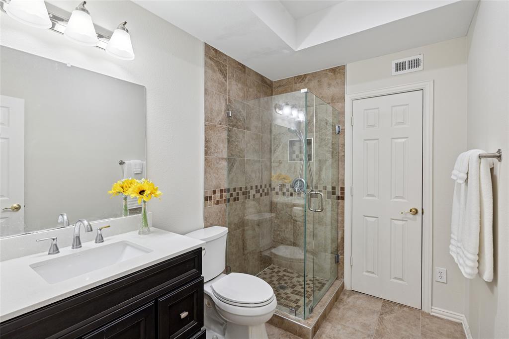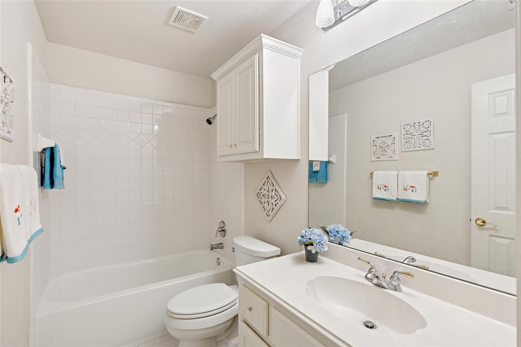 Upstairs, a versatile bonus room with a full bath—added in 2021—can serve as a fifth bedroom, game room, or home office. A dedicated HVAC split system with an exterior compressor ensures year-round comfort.