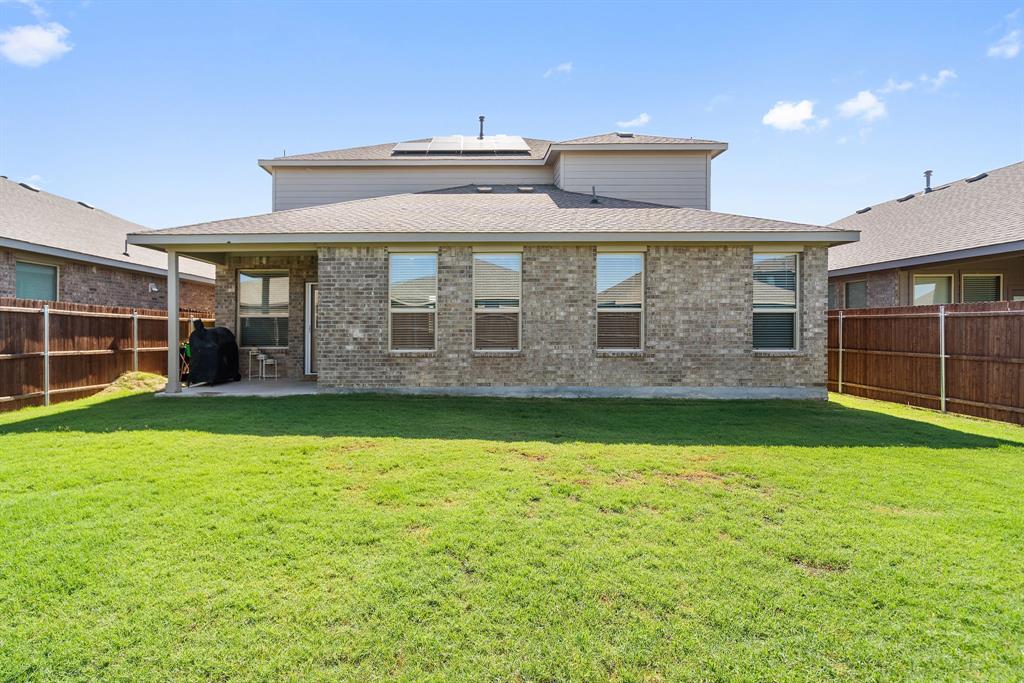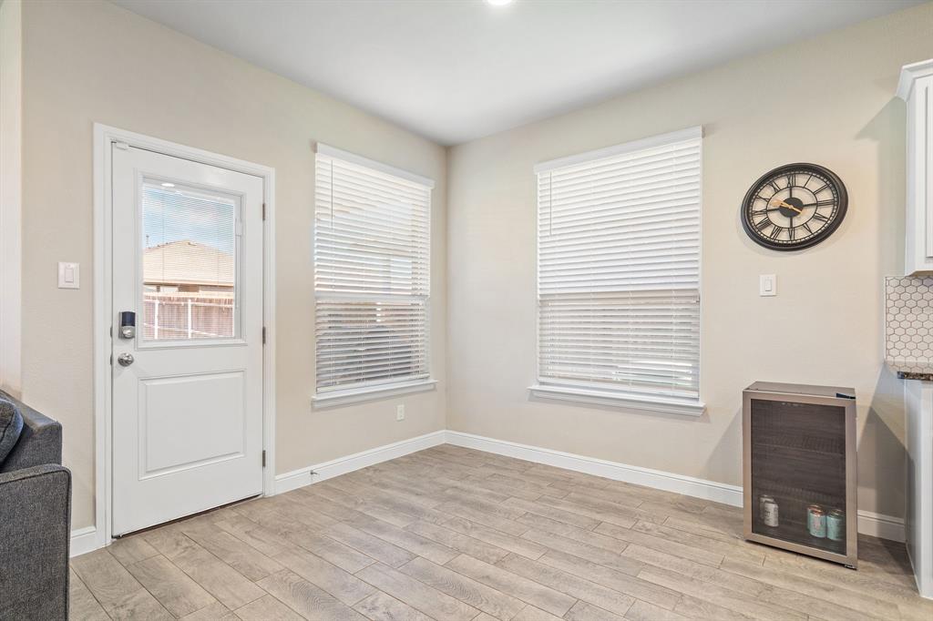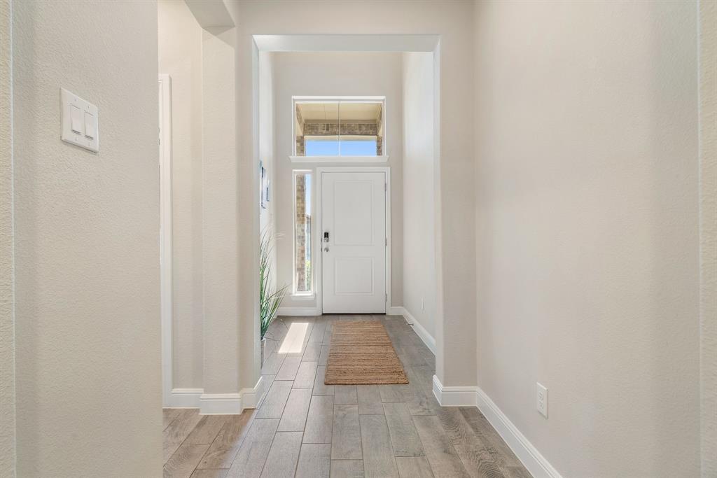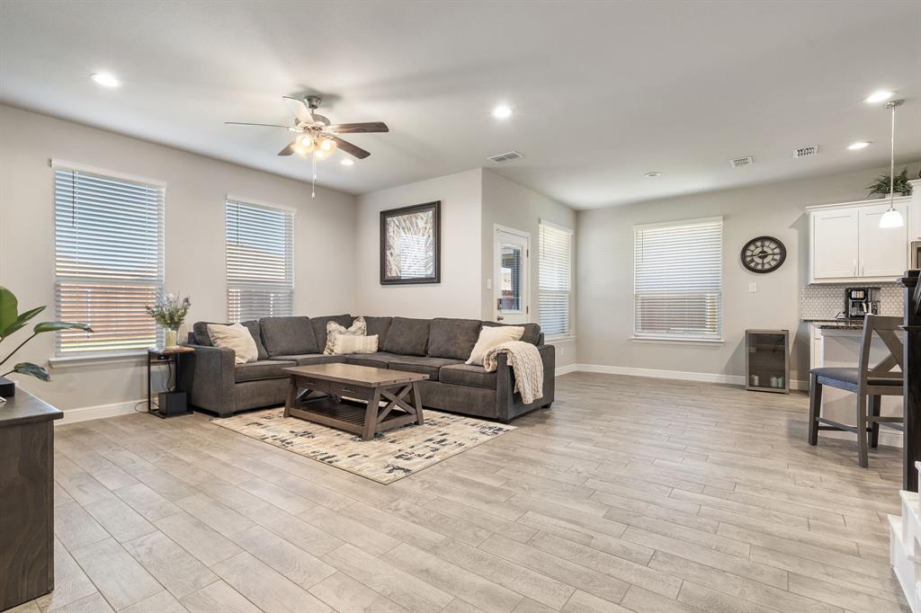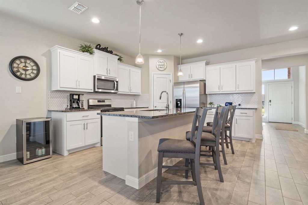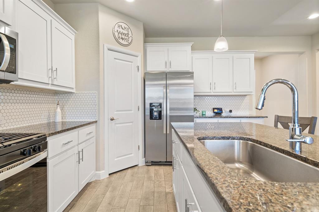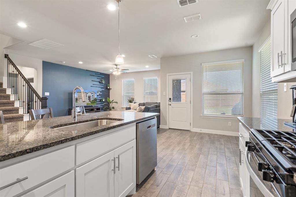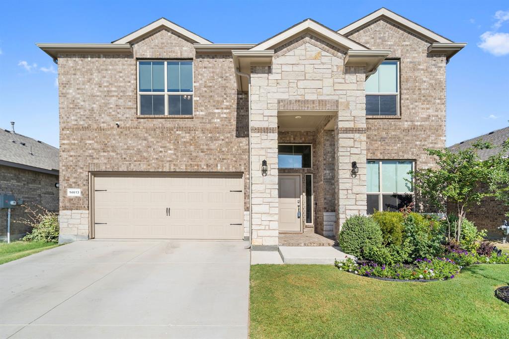 Welcome to 14613 Bootes Drive, a beautifully designed 5-bedroom, 4-bath home located in the master-planned Northstar community in Haslet. This stunning D.R. Horton Redrock floorplan offers over 2,800 square feet of stylish, functional living space with an open-concept layout & elevated finishes. The chef-inspired kitchen features a large granite island, gas range, stainless steel appliances, a walk-in pantry, and designer lighting that opens to a spacious living and dining area filled with natural light. A private guest suite downstairs is perfect for visitors or multi-generational living, while upstairs you'll find three additional bedrooms, two full bathrooms, and an ENORMOUS flexible game or living room space. The expansive primary suite offers a spa-like bath with an oversized shower with bench, dual vanities, oversized linen closet and a walk-in closet. This energy-efficient home includes a tankless water heater, dual-zone HVAC, full sprinkler system, and landscaped yard with a covered patio for relaxing or entertaining. Located in the highly sought-after Northwest ISD and just minutes from I-35W and Hwy 114, this home also gives you access to Northstar’s unmatched amenities: multiple resort-style pools including a lazy river, cabanas, clubhouse, jogging trails, soccer field, playgrounds, and well-maintained green spaces. Don’t miss your chance to own a nearly new home with all the extras in a community that truly has it all.