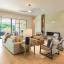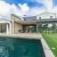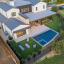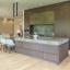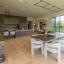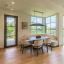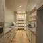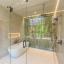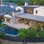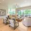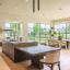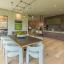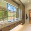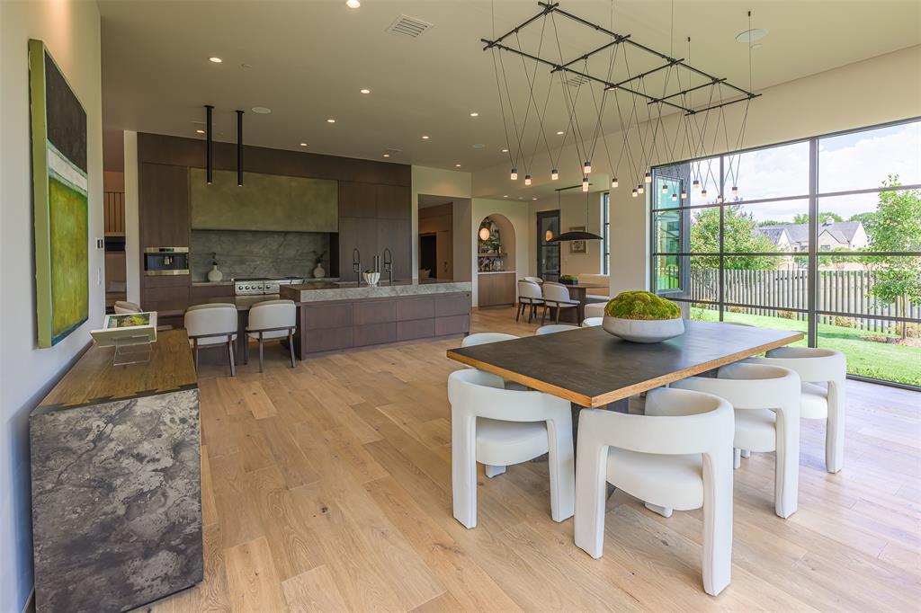The heart of the home is the walnut kitchen, anchored by a concealed butler’s pantry with a speed oven, second dishwasher, and added prep space. A built-in breakfast banquette invites lingering with coffee and pond views, while the open dining room flows effortlessly to the outdoors through a wall of custom glass windows that frame the pool, spa, and surrounding greenspace.