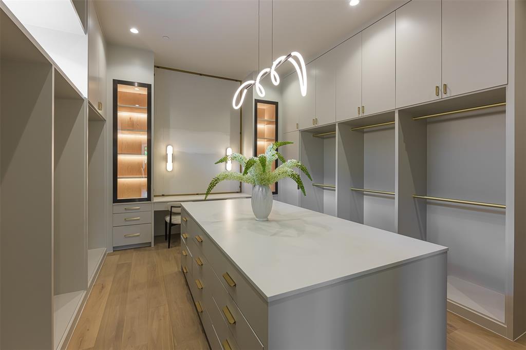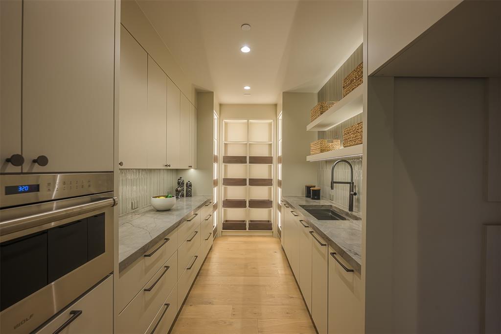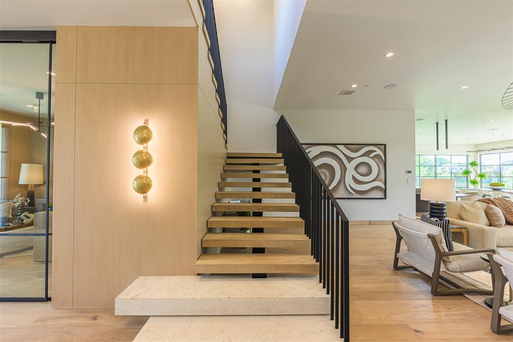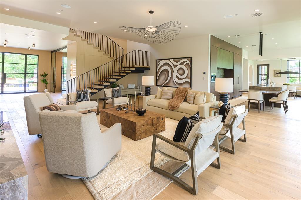 European-grade wide plank engineered white oak floors pair seamlessly with solid 8’ stained interior doors, setting a tone of understated elegance. The handsome study, wrapped in rift-cut white oak paneling, conceals a private back office beyond the glass doors—perfect for keeping paperwork, tech, and daily operations out of sight. DMF custom lighting, Lutron-controlled, mimics the sun’s natural rhythm to create the ideal ambiance from dawn to dusk.