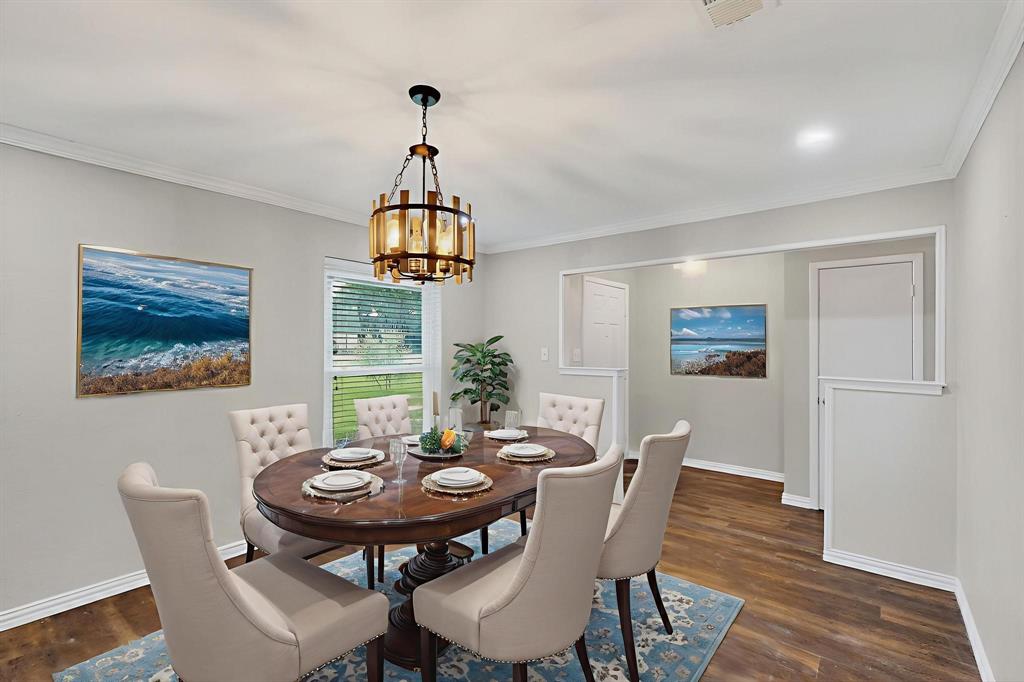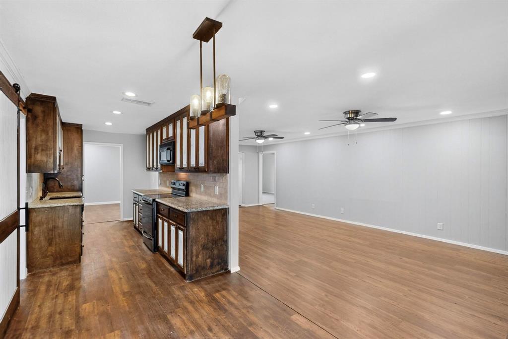 Modern light fixtures, updated bathrooms, and stylish finishes throughout elevate the home’s charm and functionality. The redesigned kitchen boasts sleek countertops, ample cabinet space, and a smart layout that opens into a spacious eat-in nook—ideal for family meals or casual entertaining.
