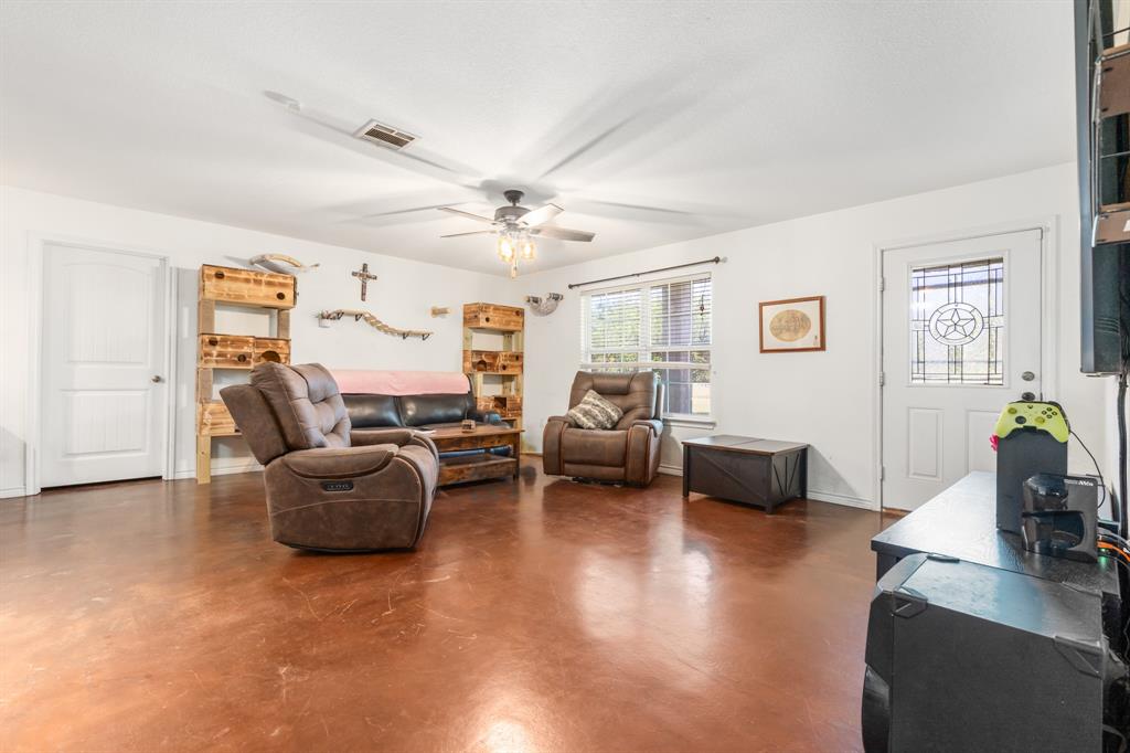 BARNDOMINIUM on 5 acres close to LAKE WHITNEY with 1500 sqft shop! This property has everything you've been looking for! 3-bed 2-ba house with attached garage features stained concrete flooring perfect for easy cleaning. Large kitchen with ample cabinet space and granite countertops. Master bedroom is isolated and features an ensuite bath with soaking tub, separate shower, and walk in closet! 1500 sqft shop has electricity connected, HALF BATH, wood burning stove, window unit, and storage loft with drive through roll up doors! Location is ideal at the intersection of 933 & 934 and is on a paved road! Full perimeter fencing with a small portion in need of repair and fully fenced front yard. Wooden privacy fenced side yard would be perfect for a private hot tub nook as the only window to see inside is from the master bathroom. Solar panels will be paid off at closing. Located just a little under an hour from Fort Worth, put it on your list of homes to see!