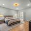 The primary suite is a true retreat with a spa-like bath—complete with soaking tub, rainfall shower, dual vanities, and custom walk-in closet. A downstairs guest suite lives like a second primary. Automatic blinds add convenience throughout the main living spaces, along with a chic centrally located powder bath.