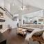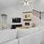 Inviting stone fireplace and high ceilings