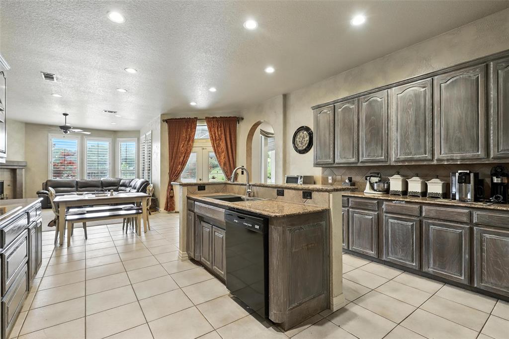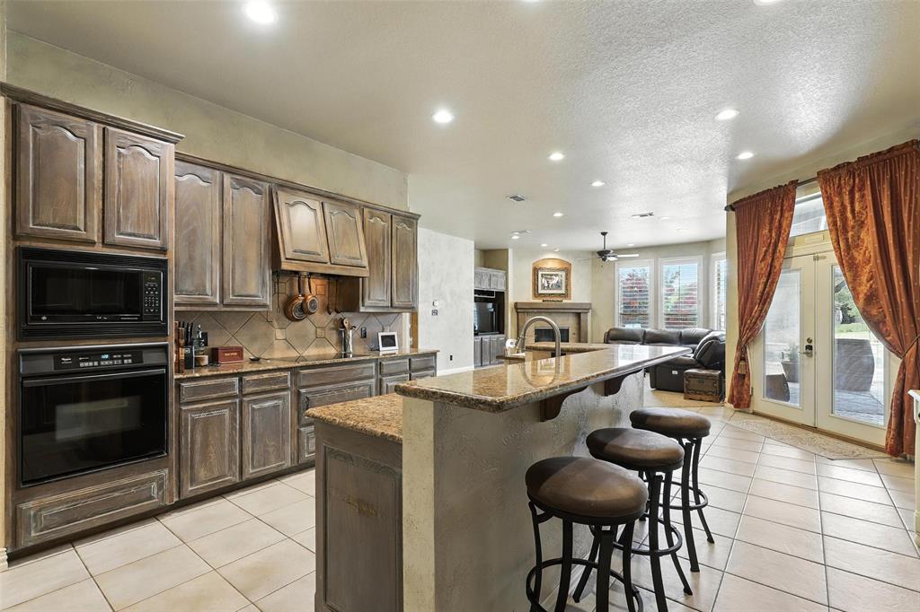 Inside, you'll find plenty of space for everyone. The open layout features tall cathedral ceilings, two cozy fireplaces, and gorgeous custom finishes throughout. The kitchen is ideal for family meals and gatherings, with granite countertops, a tile backsplash, and lots of counter space. There’s even a dry bar with a wine rack for hosting friends and family.