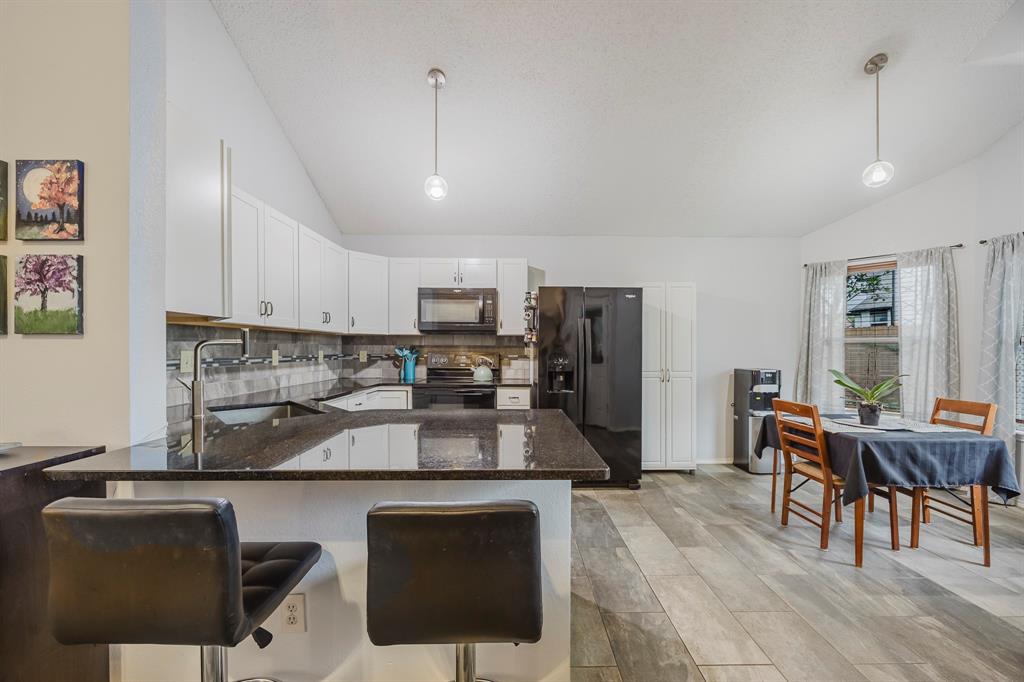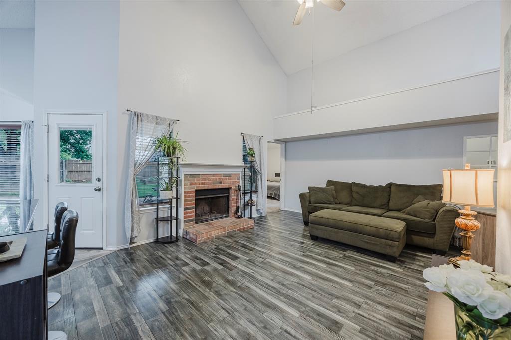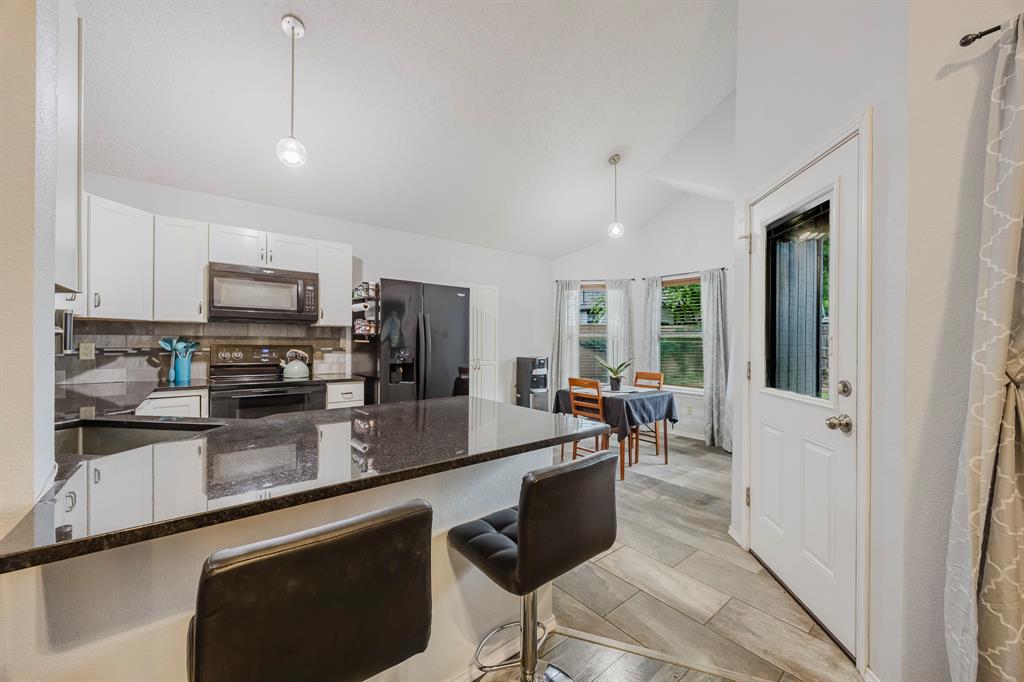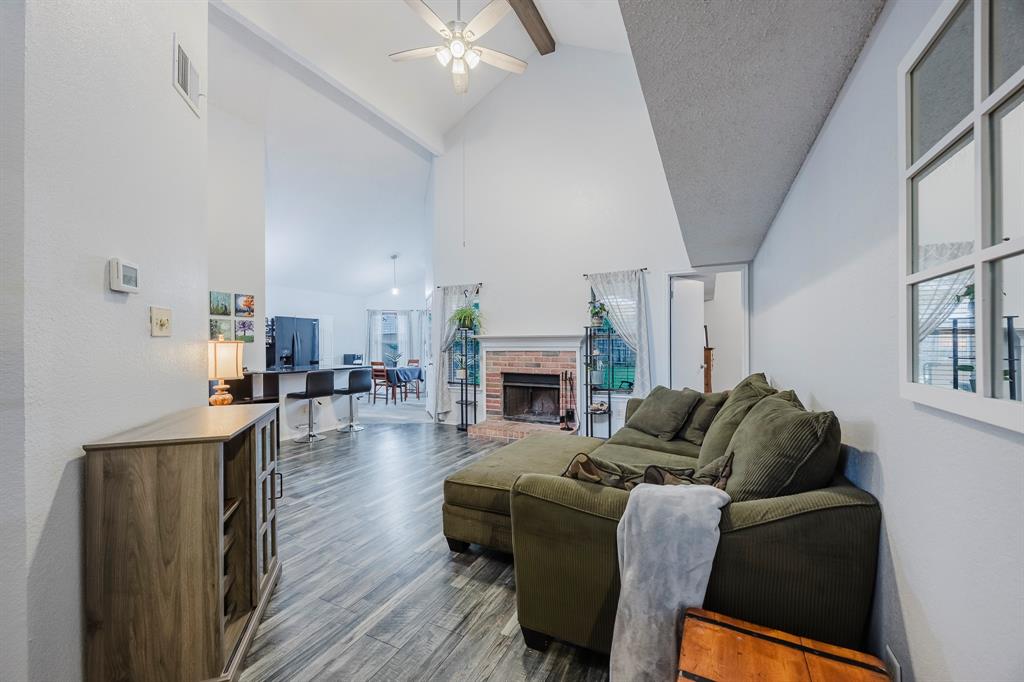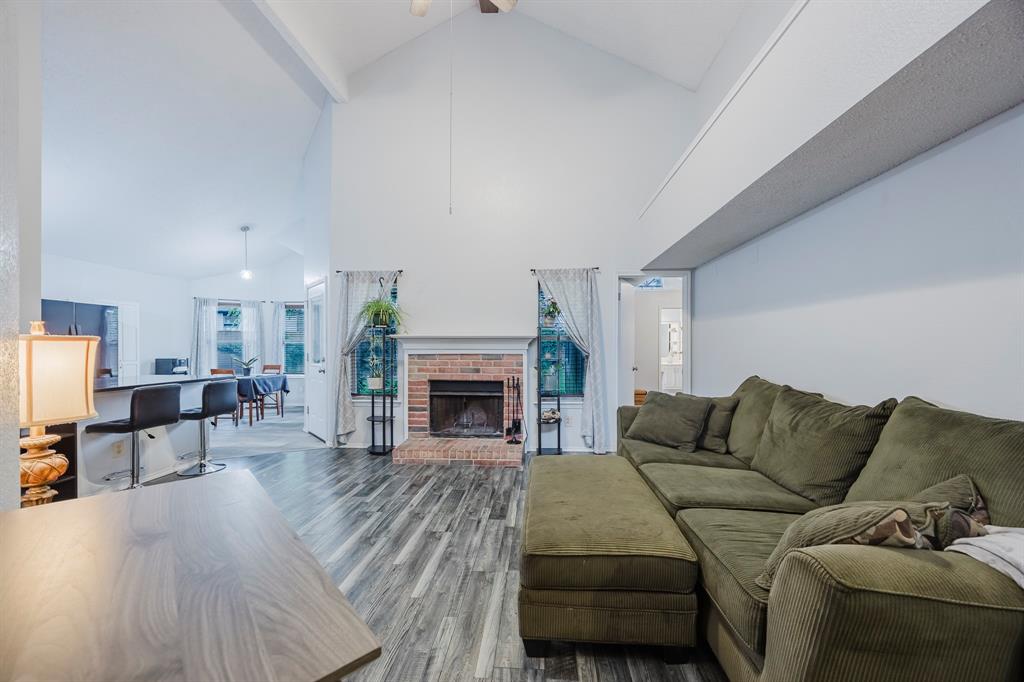 Fresh, light-filled home bursting with healthy, vibrant established outdoor landscaping. Well maintained one level 3BD, 2BA home with updated flooring and lighting throughout located close to many shopping, dining and entertainment options. Open floor plan with a charming brick wood-burning fireplace situated as a focal point in the center of the vaulted living room. Owner suite located on the rear of the home with a split floor plan for the other two bedrooms. Beautiful granite countertops updated in the well appointed kitchen as well as the bathrooms. Additional flex space can be utilized to fit your needs. Step out back to the peaceful and serene backyard. Featuring flagstone patio, mature trees and garden beds. This home is in great condition with blinds and curtain rods throughout and simply turn key ready. It's just waiting for you to make it your own! Newer HVAC with heat pump for cost savings in electricity.